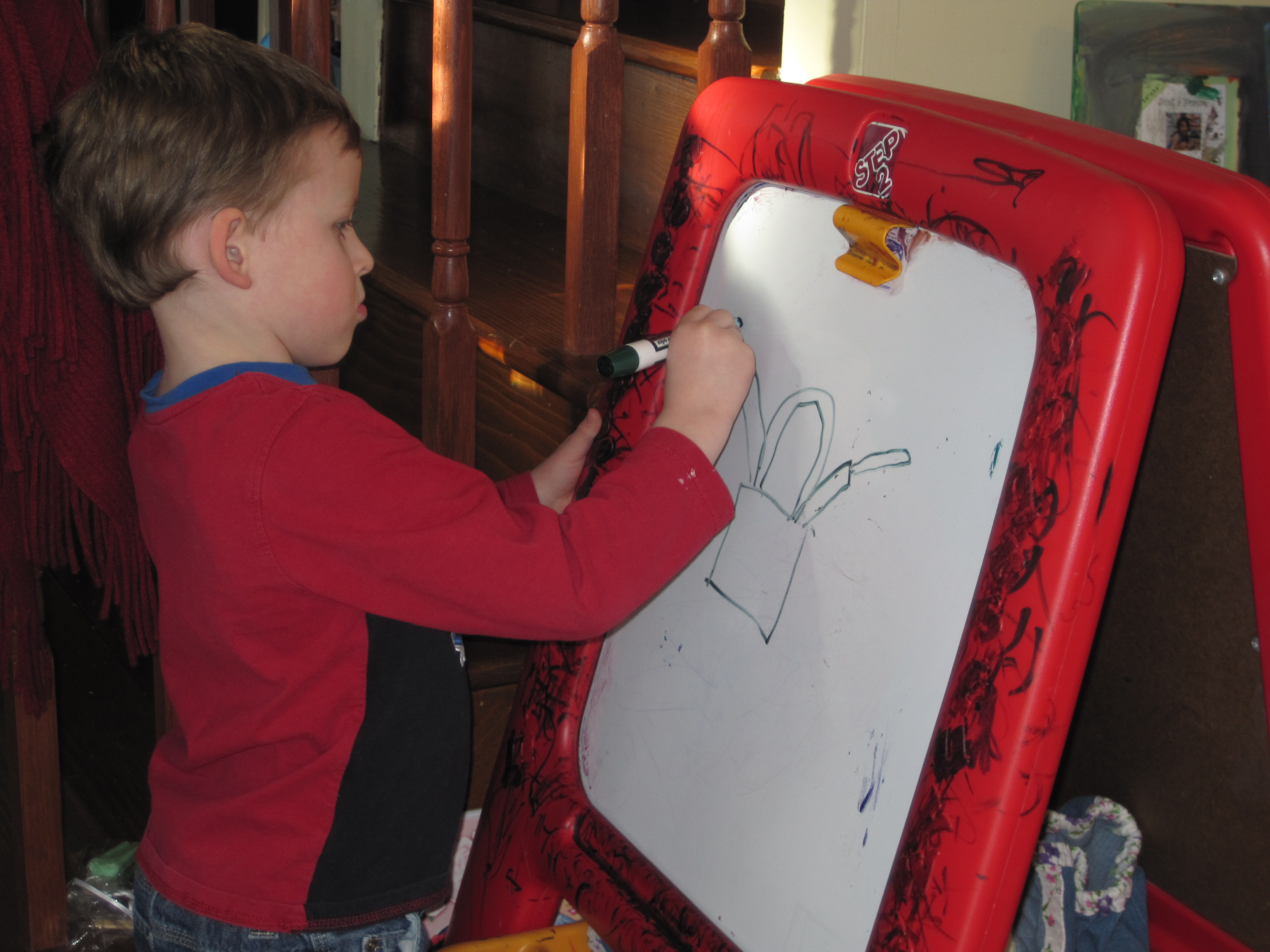 lex drawing Published January 22, 2011 at 2816 × 2112 in Fun with the new camera Parrish brought over a little bag of homemade (I think!) soaps that are shaped like popcicles. Lex decided to try his hand at still life art.