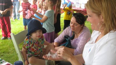 the face painting booth. The lady actually stamped her face and