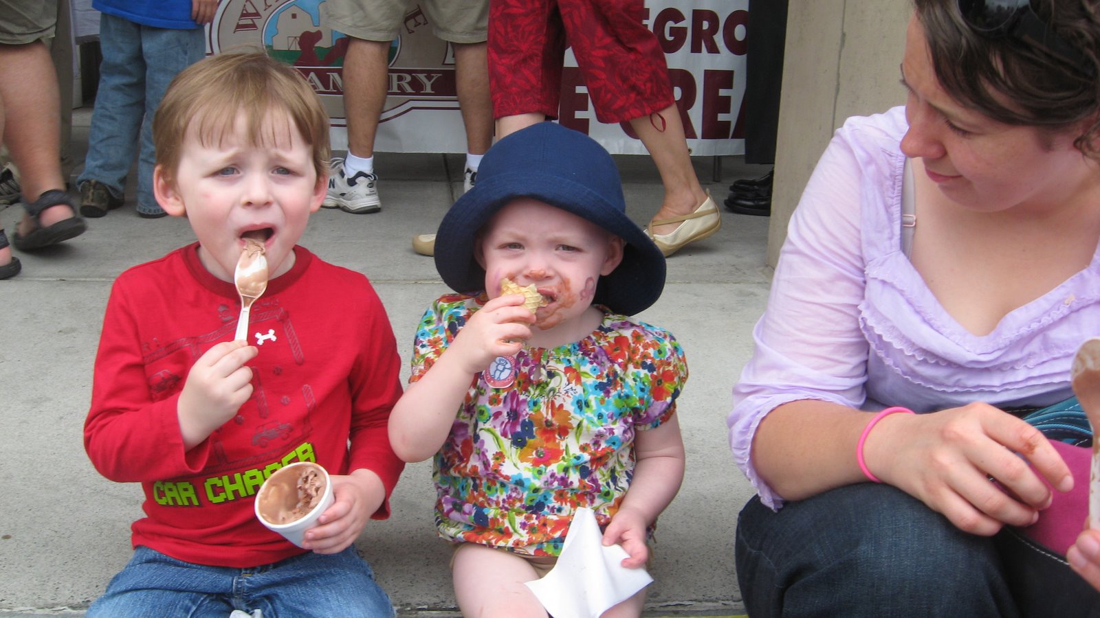 ice cream? Really they did :) I think the sun is in their eyes,