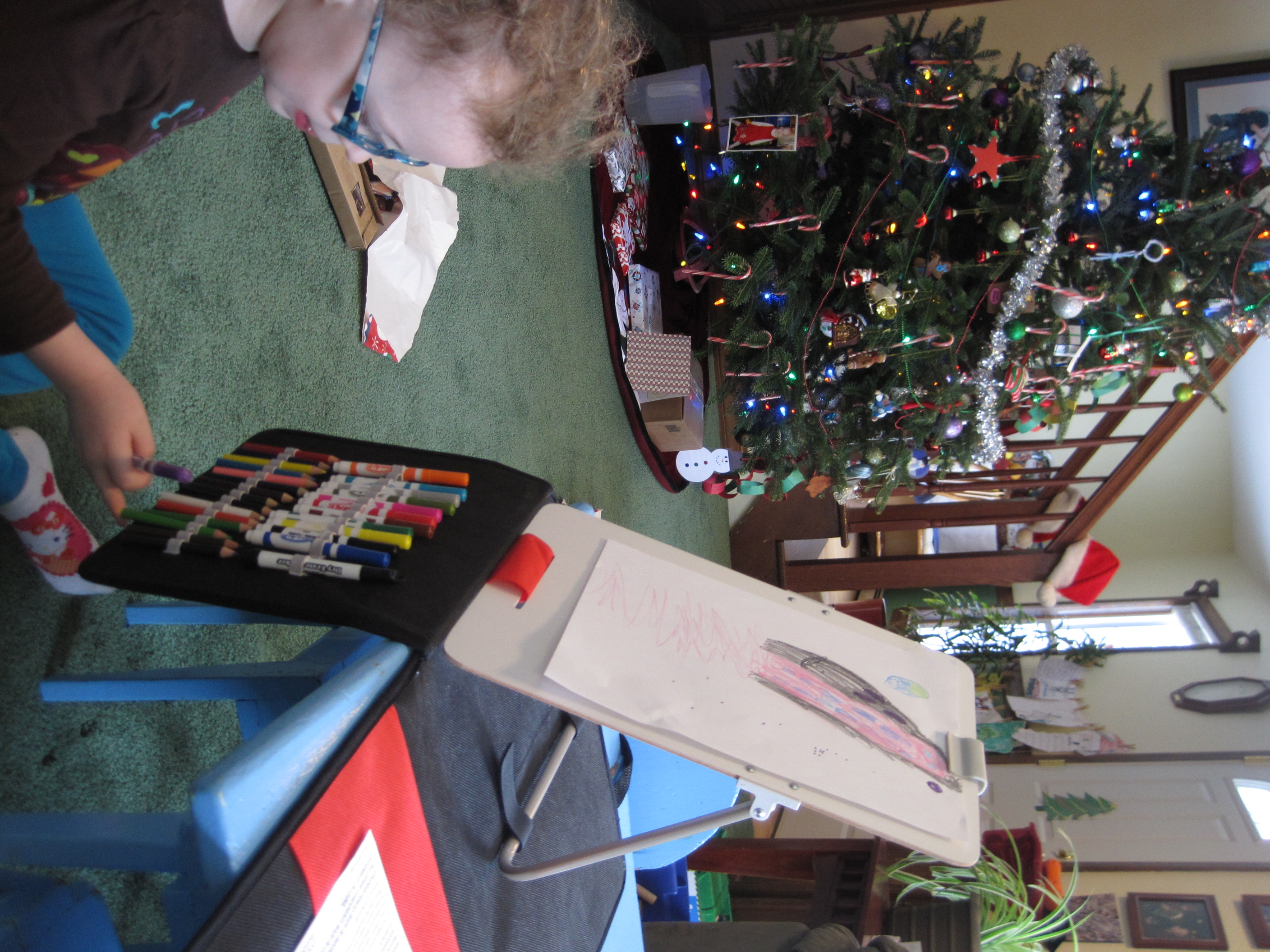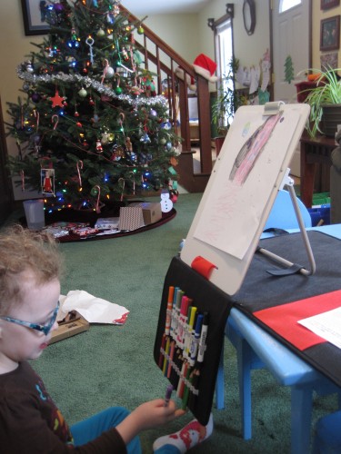 Eve loves her portable easel. She went right to work drawing me pictures and we discussed all the different places she could use it.