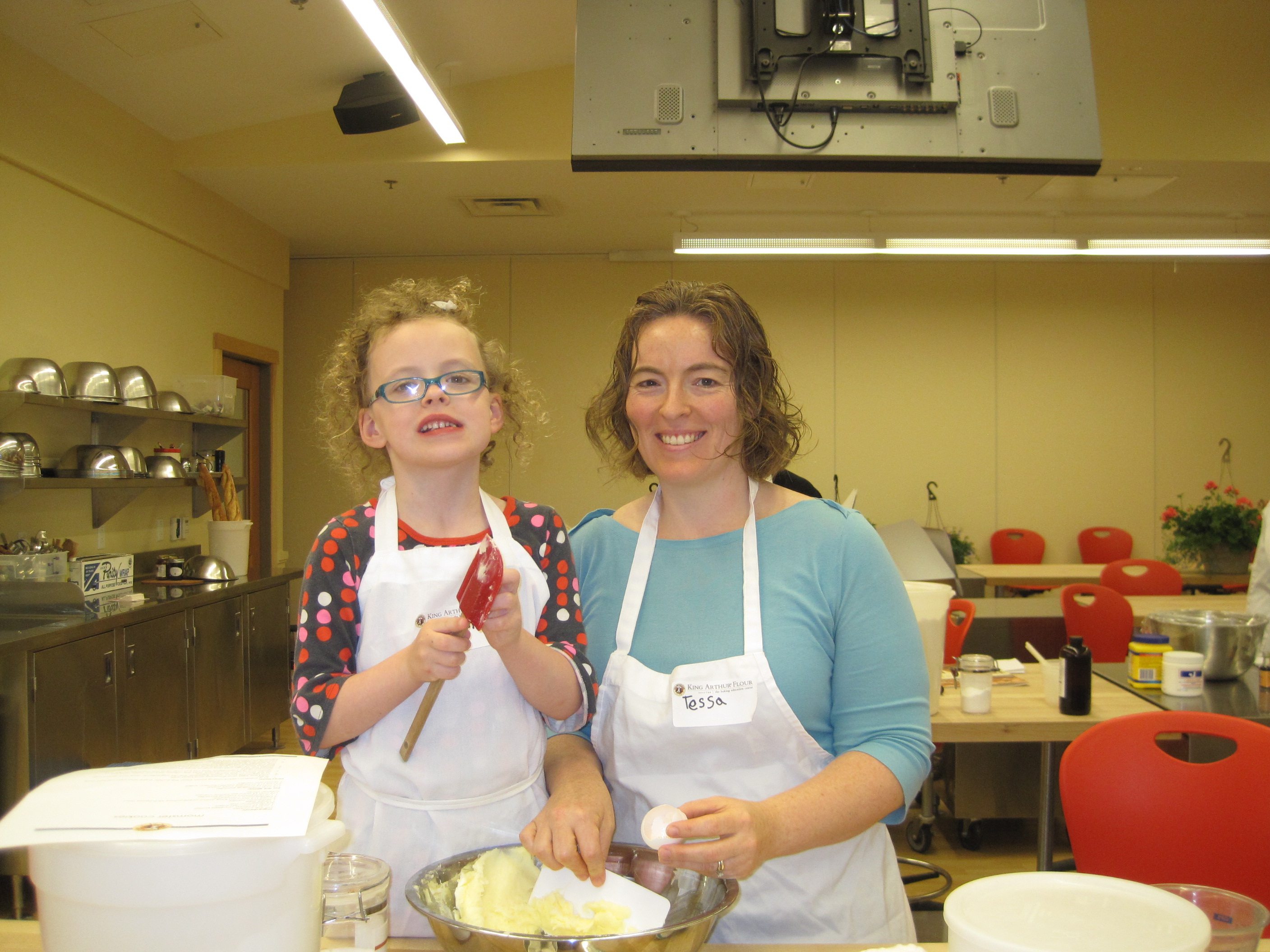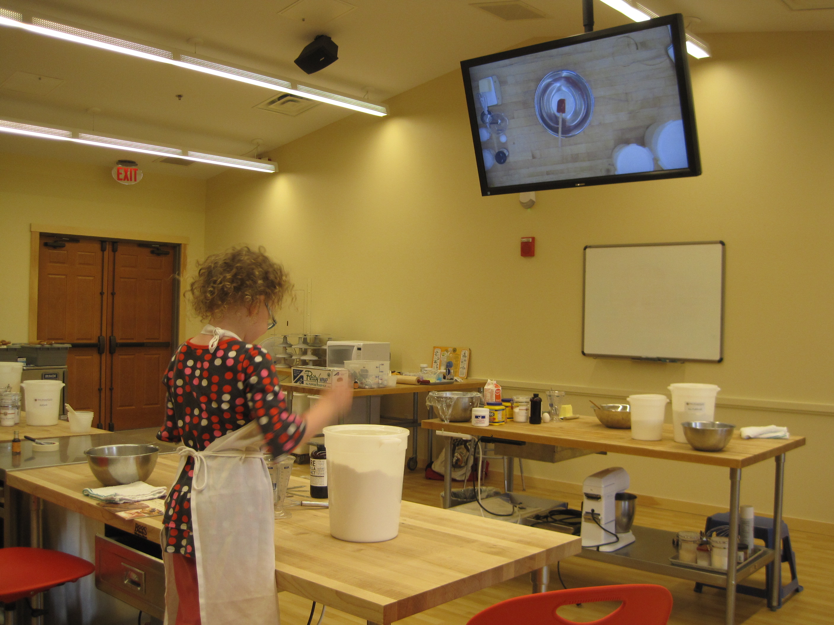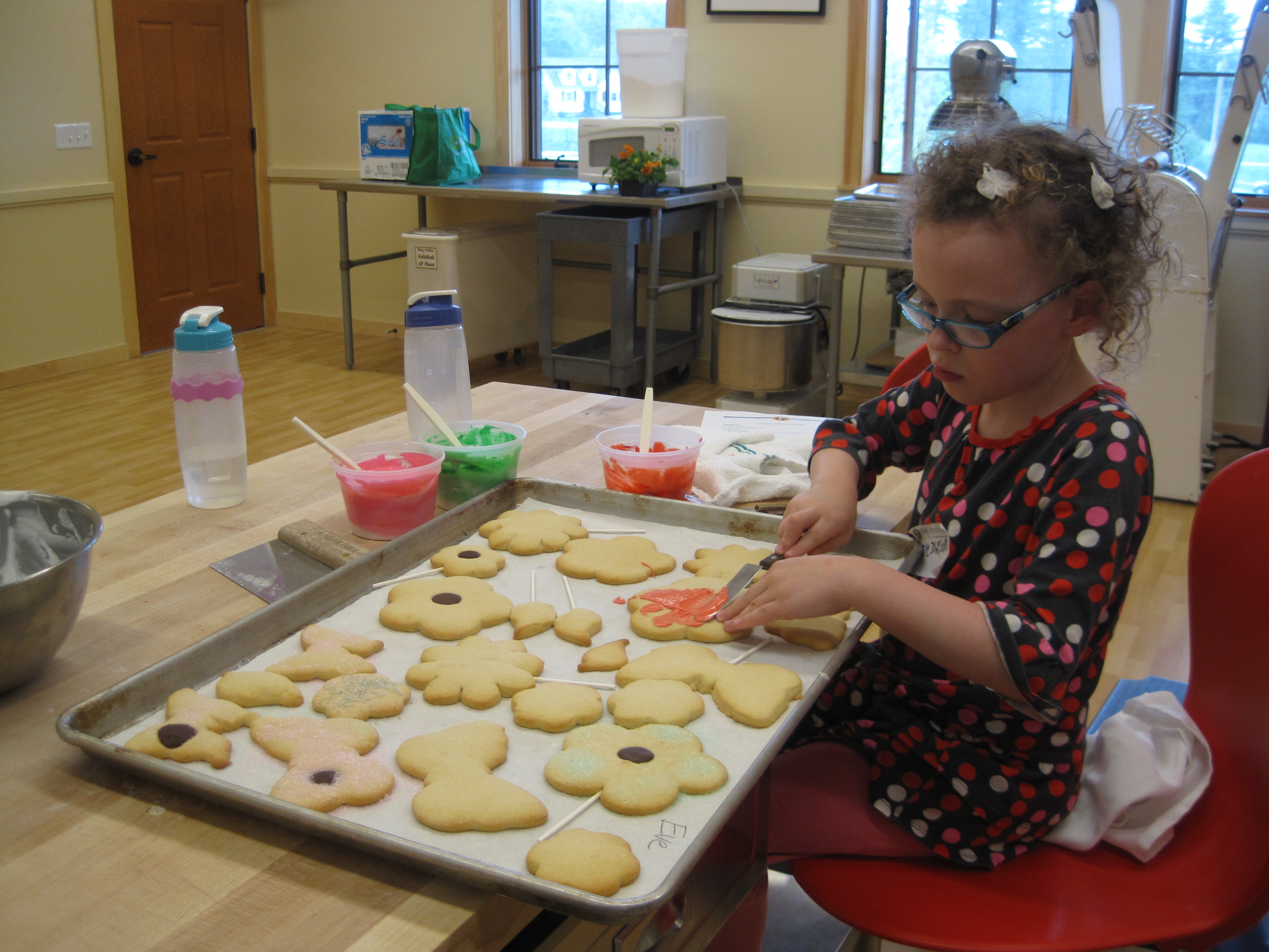 After lunch, Eve and I headed to King Arthur Flour for a baking class in their fancy new Baking Education Center. Double yay! It was a “baking with kids” class so the subject matter wasn’t new, but we had fun anyway. We made sugar cookies then decorated them with sugar frosting. :) Sugarlicious!