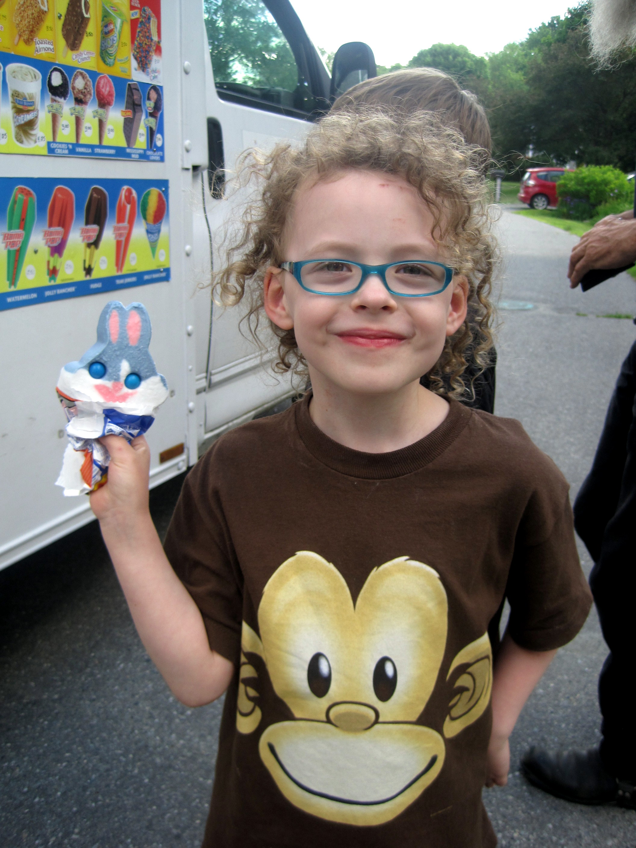 It’s interesting how children chose ice cream. Eve picked a Bugs Bunny popsicle with gumball eyes. What flavor is it? Who cares, it’s a cartoon bunny!! She didn’t even know it had gumball eyes until after she bought it.
