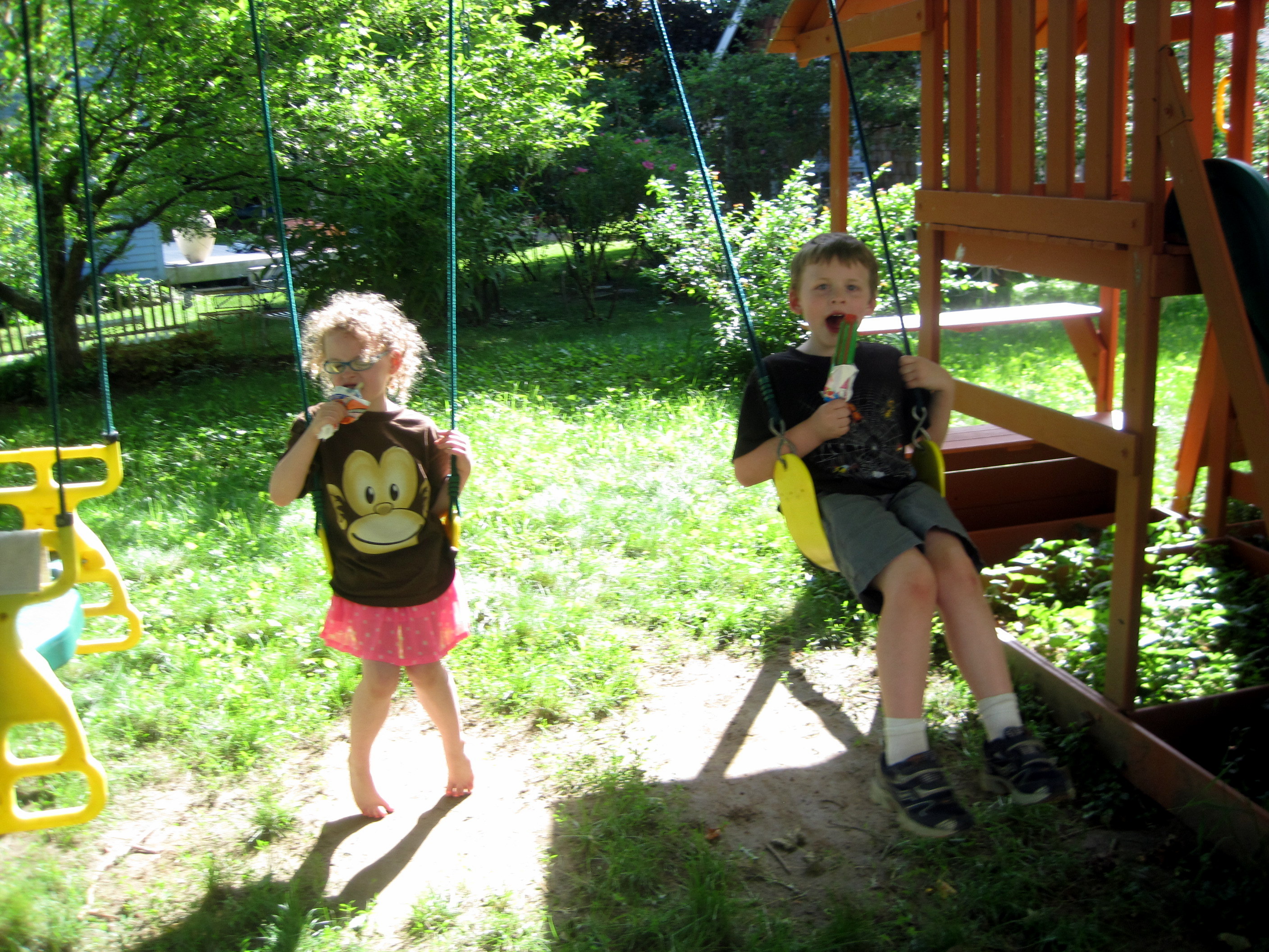 They got all sticky with the ice cream then went to play in the dirt box in the back yard. Summertime fun! :)