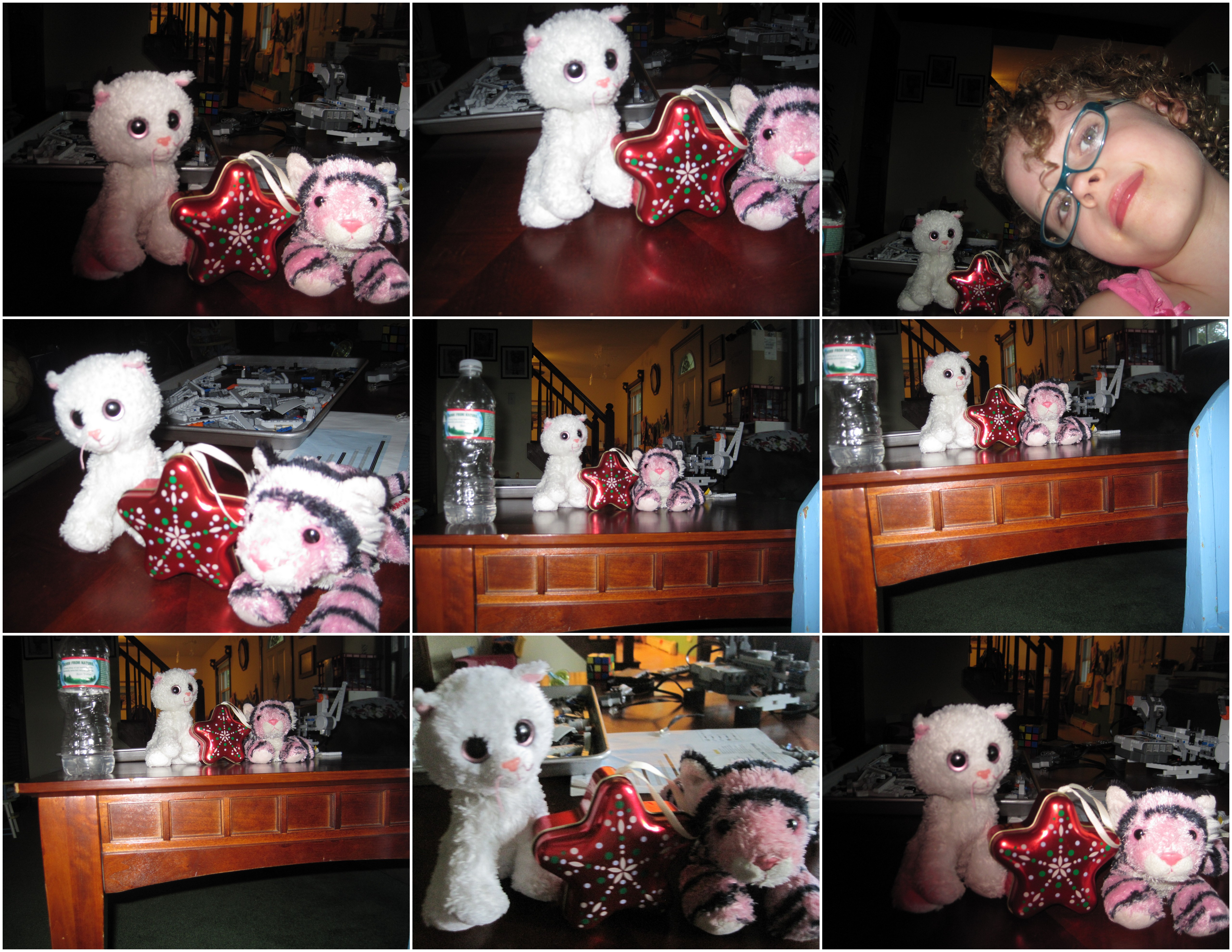Eve decided she wanted to take pictures of her special things to make Christmas cards this year. Here’s what she came up with. She requested I print them for her tonight, so perhaps she’ll be handmaking holiday cards tomorrow. What better time than mid-July! :)