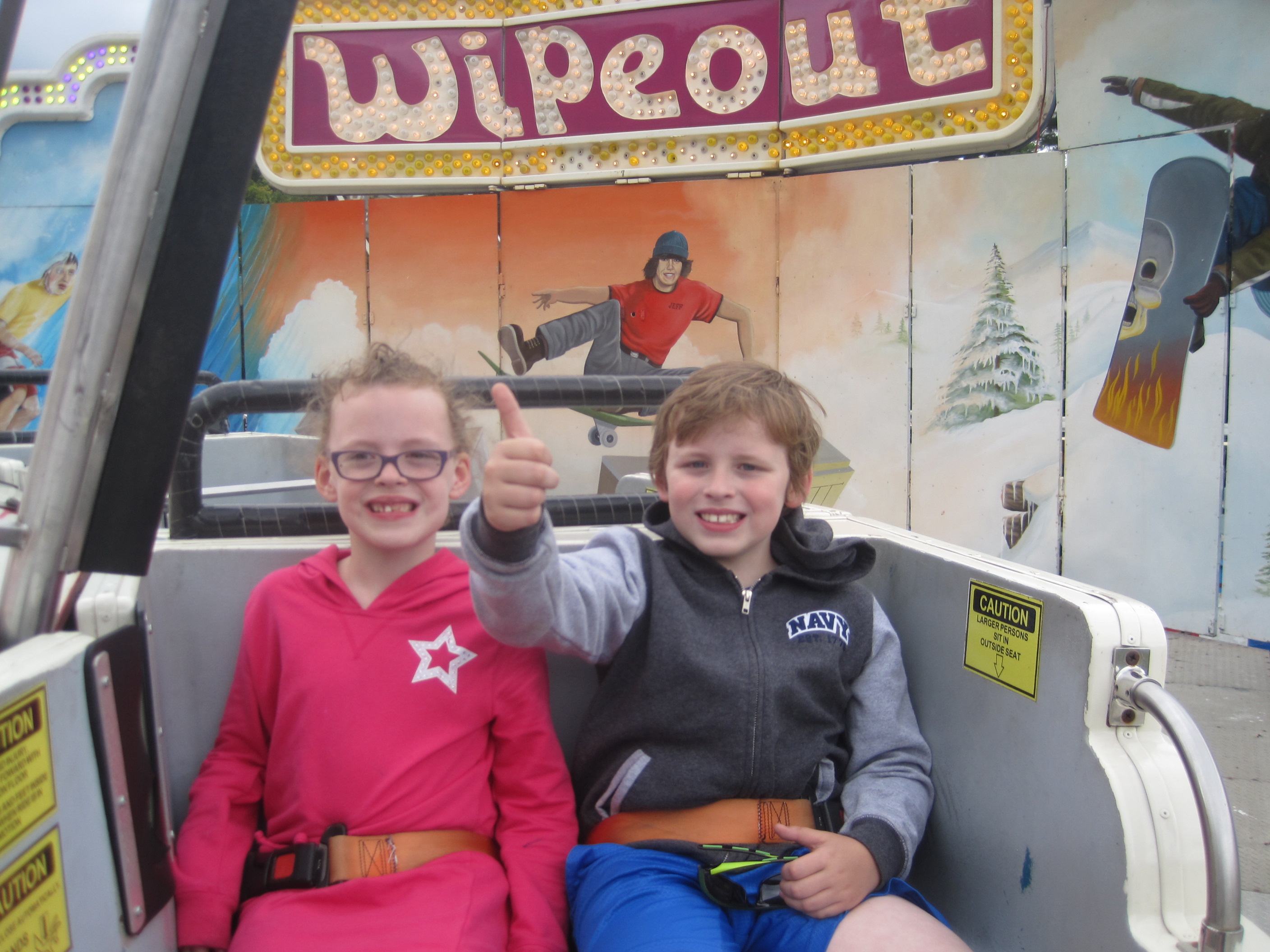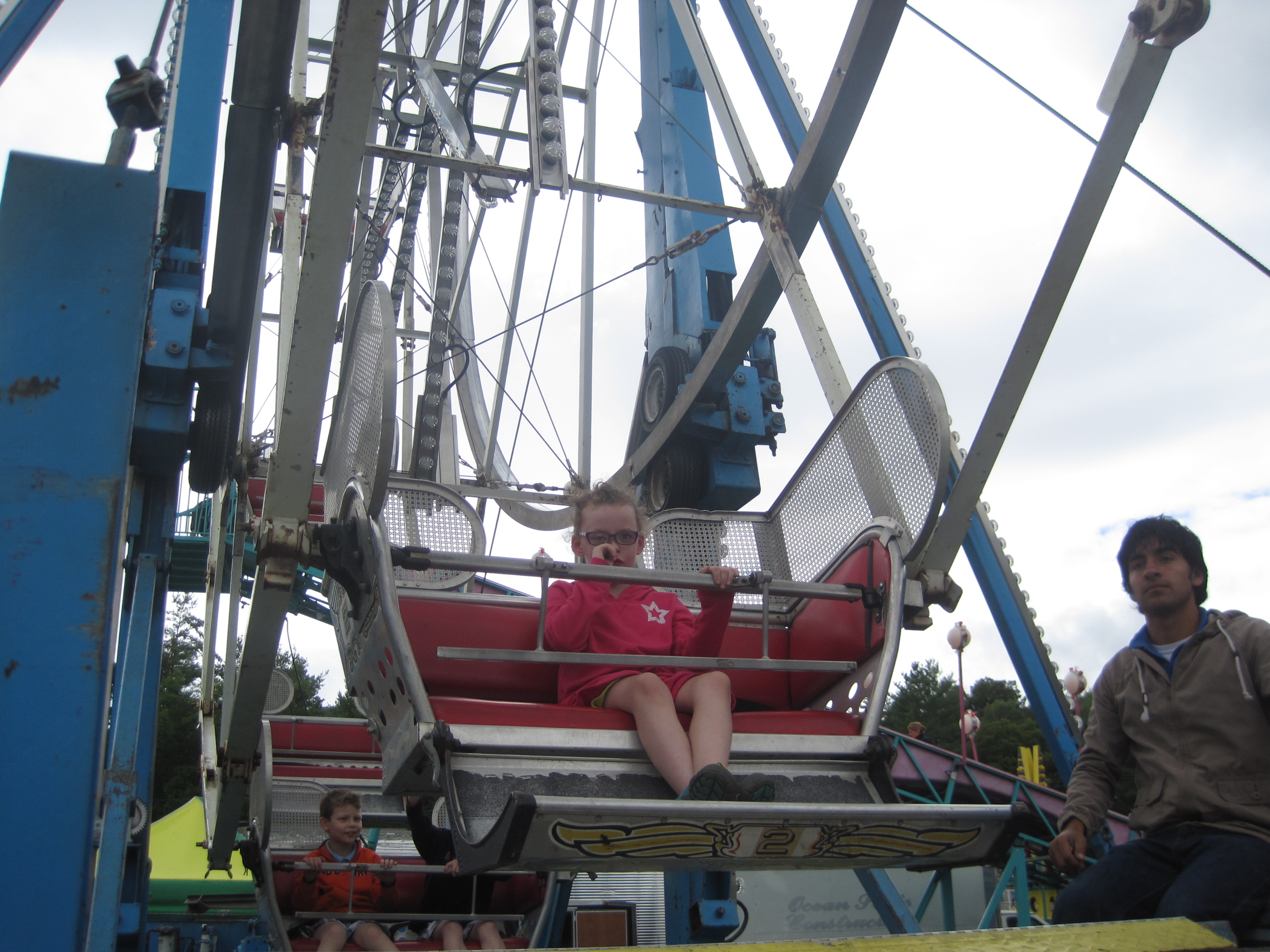 I went on the Scrambler with them, then on the Ferris wheel. Then they went on the Ferris wheel a few more times without me, then Lex was bored and Eve went again on her own!