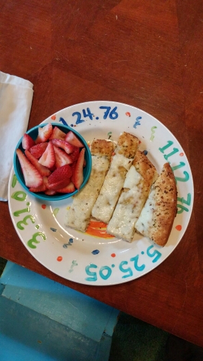 Lex got to choose his birthday dinner, so Ziggy sticks it was! I served him on this birthday plate, but he wasn’t happy about it. He transferred everything to a normal plate instead. Oh well. He’s ten now, but still the same boy we know and love!