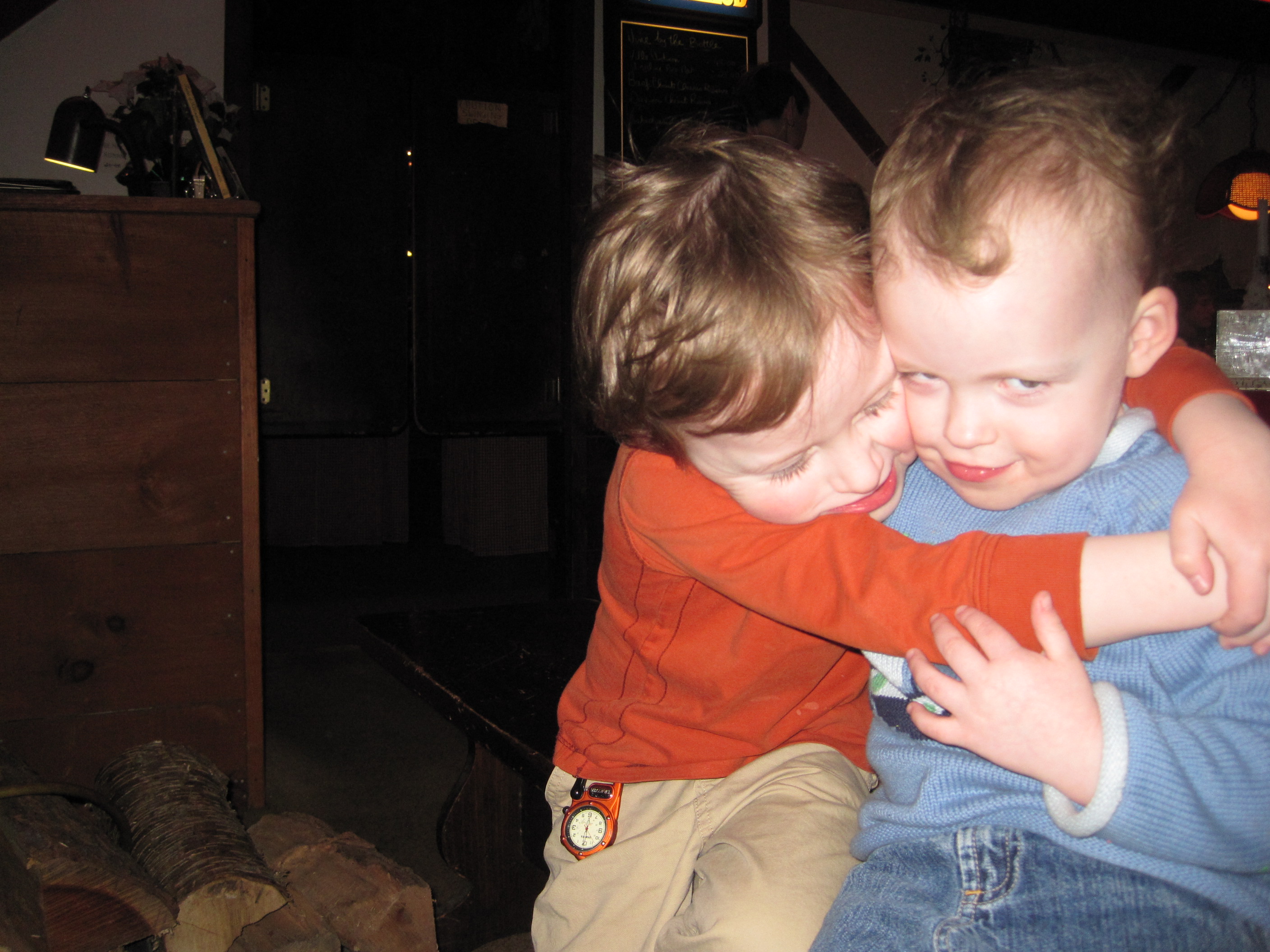 Sitting by the fire at The Pasta Pot where we stopped for dinner.