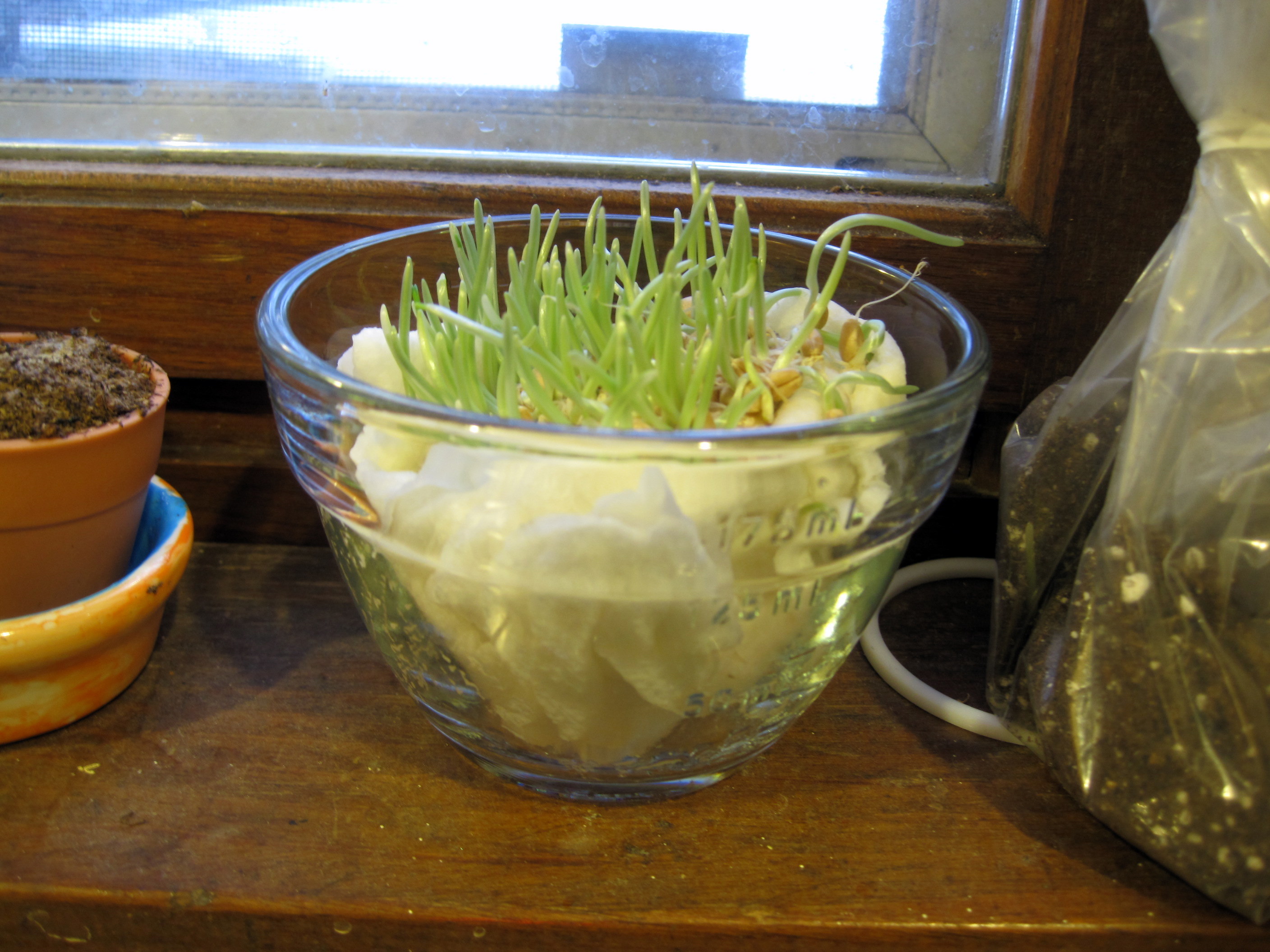 It’s starting to look a little like Spring around here! I see a few crocus poking through the snow and we have some serious wheat grass growing in the kitchen :) Thanks Rosy! The kids each planted their own pots and I wrapped the remaining seeds in damp paper towel to watch them sprout. Gardening is fun. Sadly our body snatcher and sensitive plants aren’t doing as well.