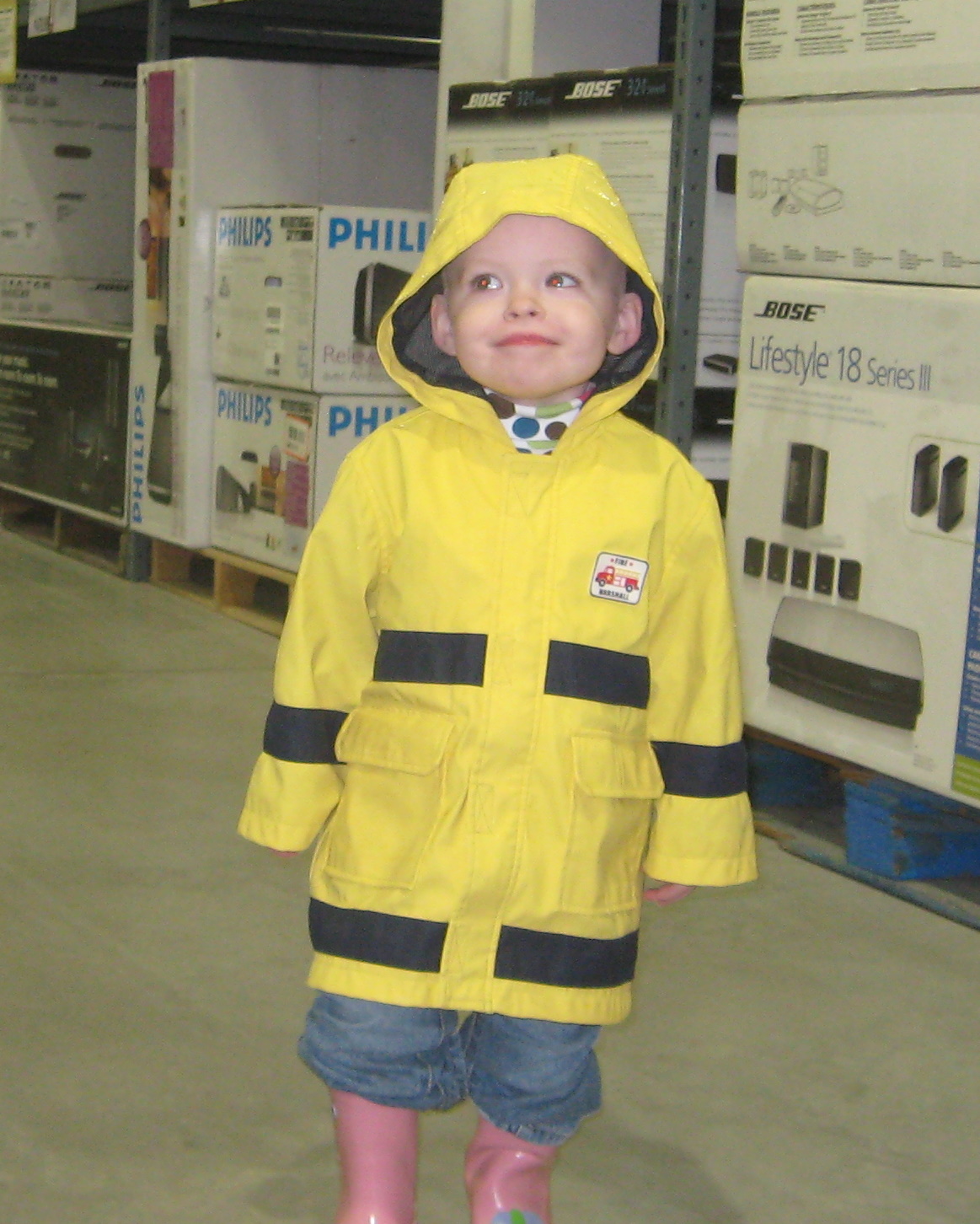 coat. Lex wore his “new” (hand-me-down from Joshua) rain boots