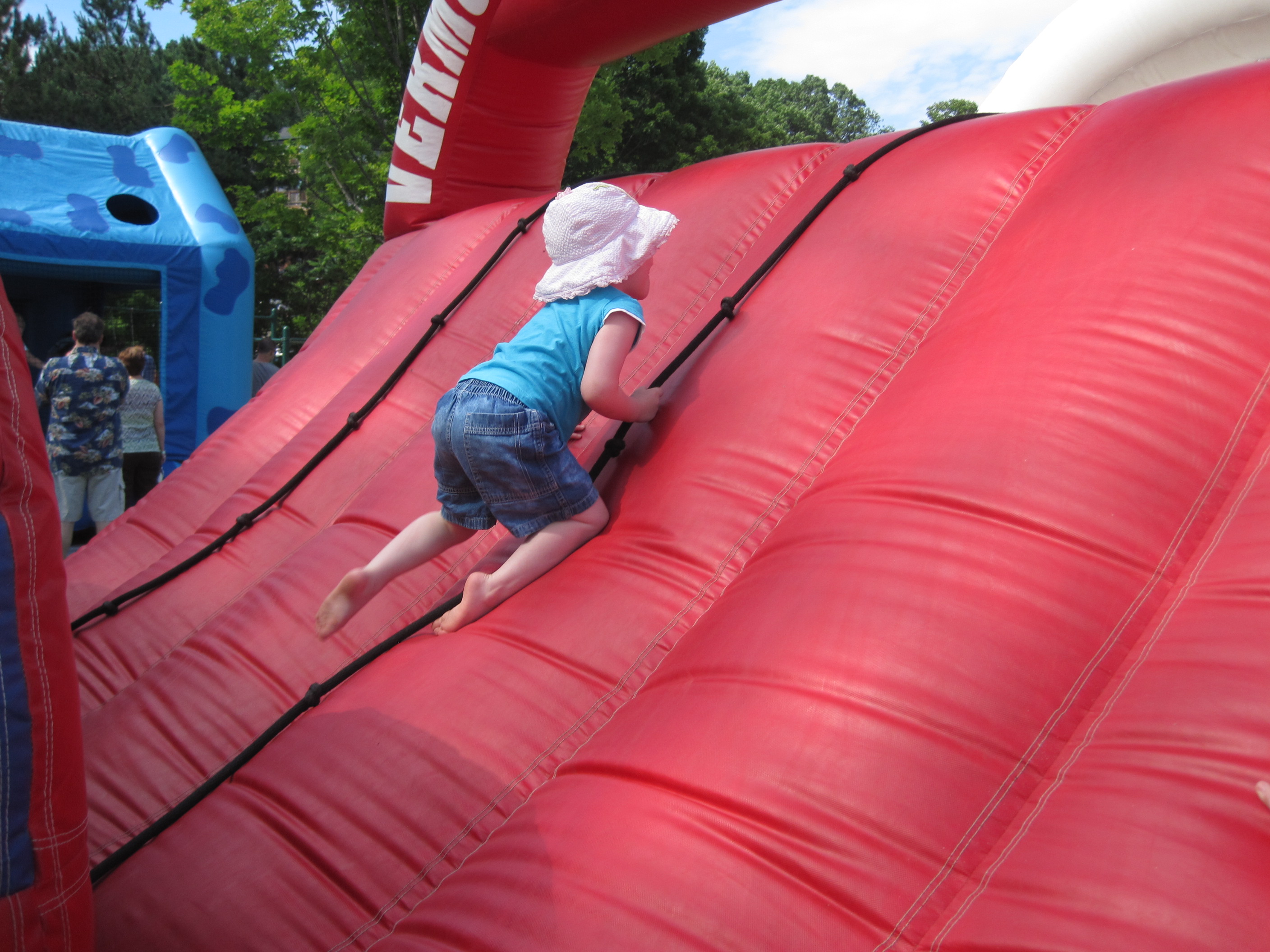 Eve climbing in the Kid Zone. The kids begged us to pay $5 each to play in this Kid Zone. Lex was super excited about this thing. We waited in line and finally when it was our turn he decided it was too overwhelming for him. Eve loved it and Lex opted for the free playground instead.