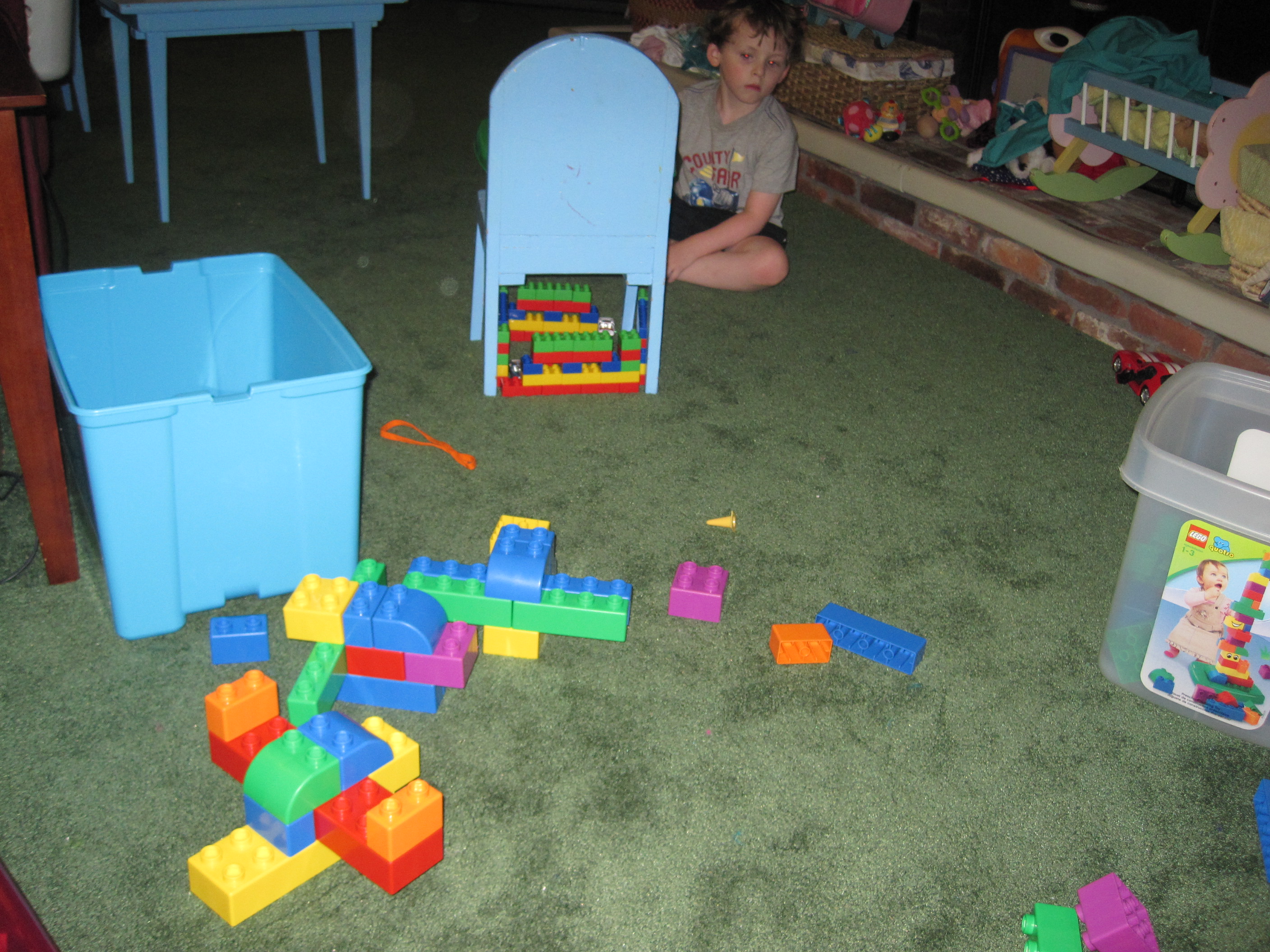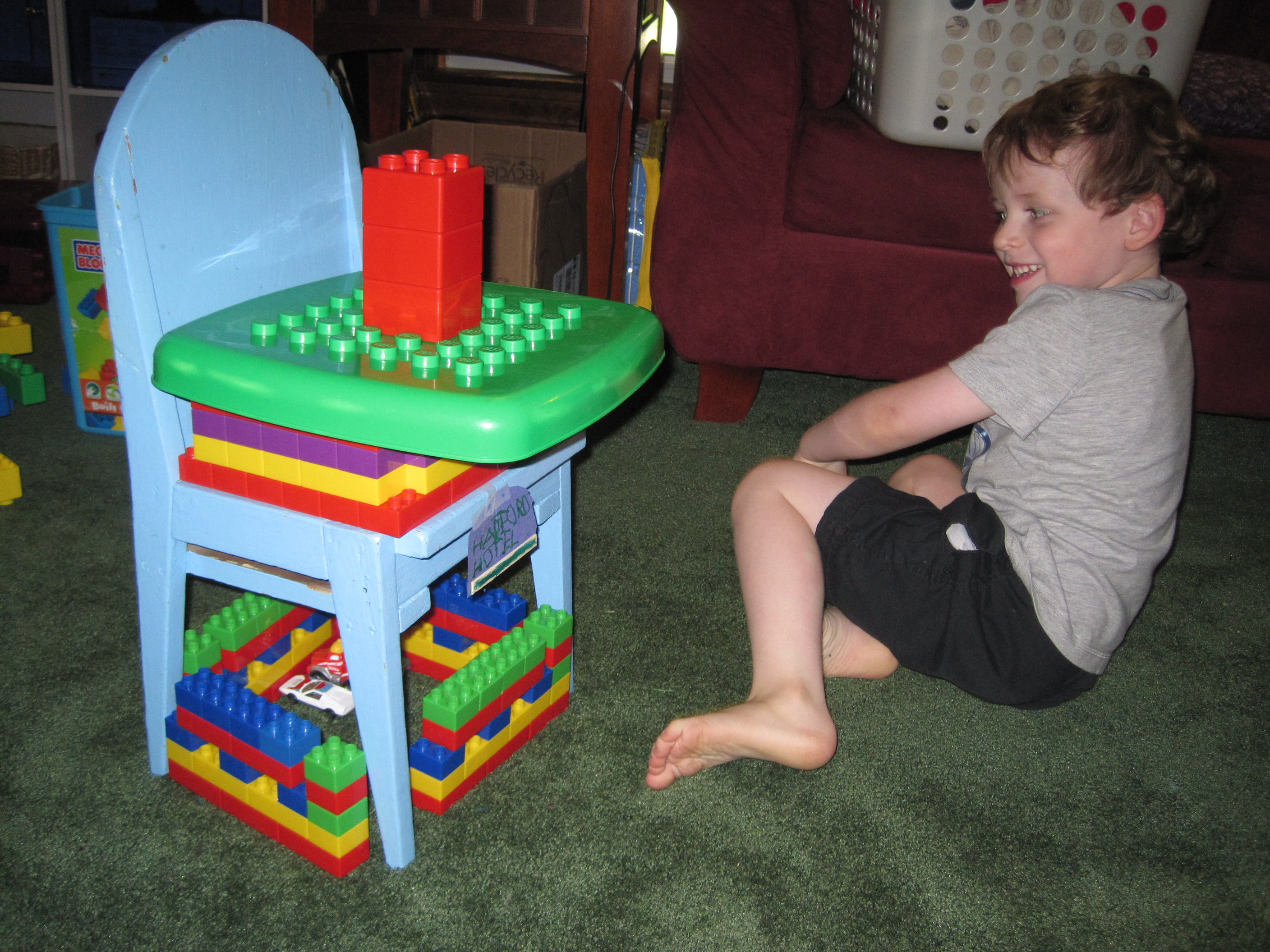 Here is the final hotel. The parking garage below, with cars, has an (imaginary) escalator up into the hotel. Lex is very proud of his work. :)