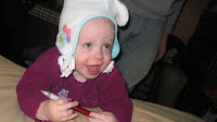 new hat from Aunt Rose! It has a pair of mittens hooked at the