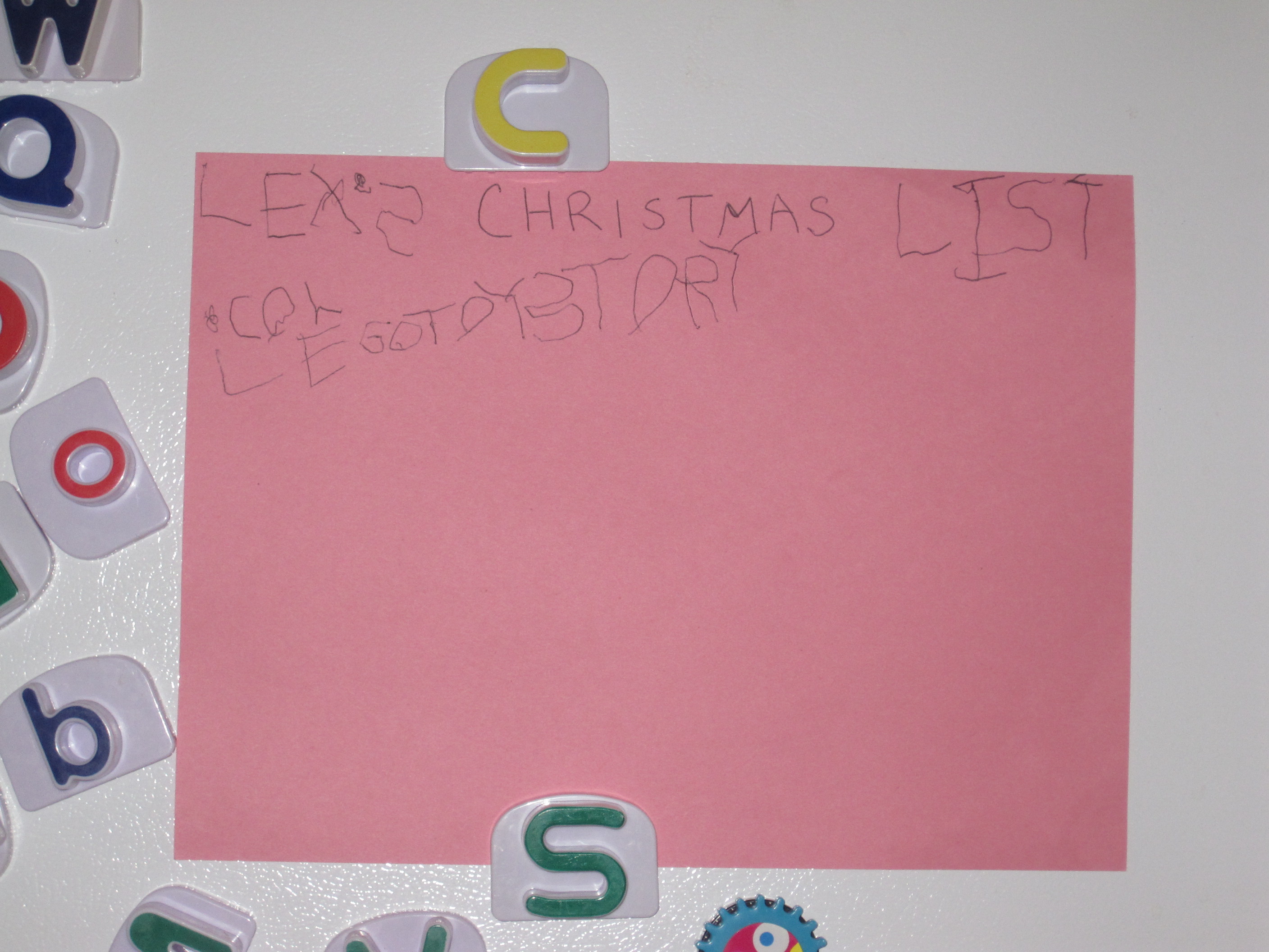 So it begins… Posted on August 16, 2010 by Tessa The first item is “coloring books” but he got too lazy to finish it. That’s how much he wants them! :)