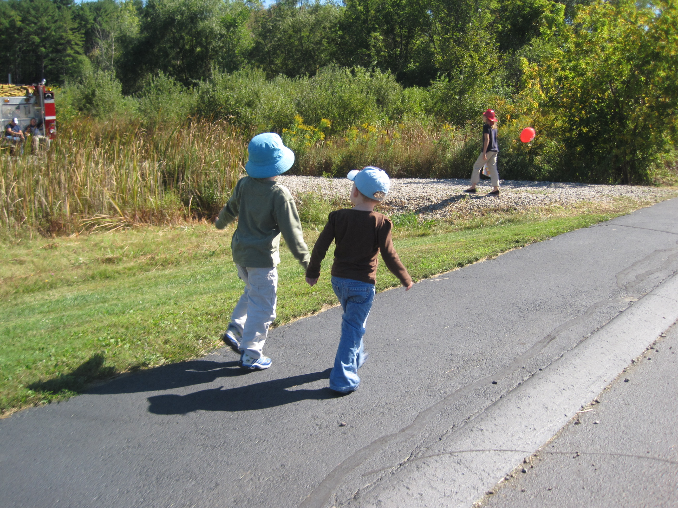 This morning we decided to go apple picking. Unfortunately when we got to our orchard of choice we found out that they aren’t doing PYO yet, and possibly not at all this season because of a late frost this past spring. Bummer! We headed to another orchard, but along the way we saw a low flying emergency helicopter and signs for a Fire Safety day put on by the local fire department. The kids unanimously chose fire trucks over apple picking, so we stopped there instead. We explored the fire trucks (my town has an awesome one!) and the rescue helicopter. We watched them burn a small building, but that was scary so we watched from a distance. On the way out we had a nice chat with a fireman who squatted down and spoke gently to the kids and they had a long talk about what to do in case of a fire. He did a great job holding their attention and listening to them and not being too scary. The whole subject is so scary! We came home with a few pamphlets and continued the conversation through lunch. I sure hope we never need that information though!