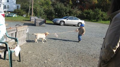 adorable dog! Lex is sporting his new jacket from our neighbor.