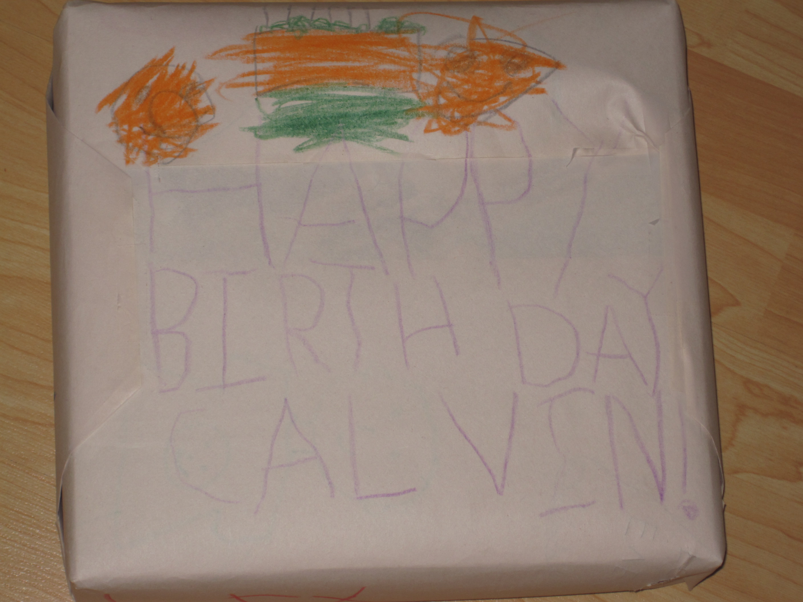 I love the Lex doesn't need fancy paper or expensive cards. This his how he prefers to wrap presents.