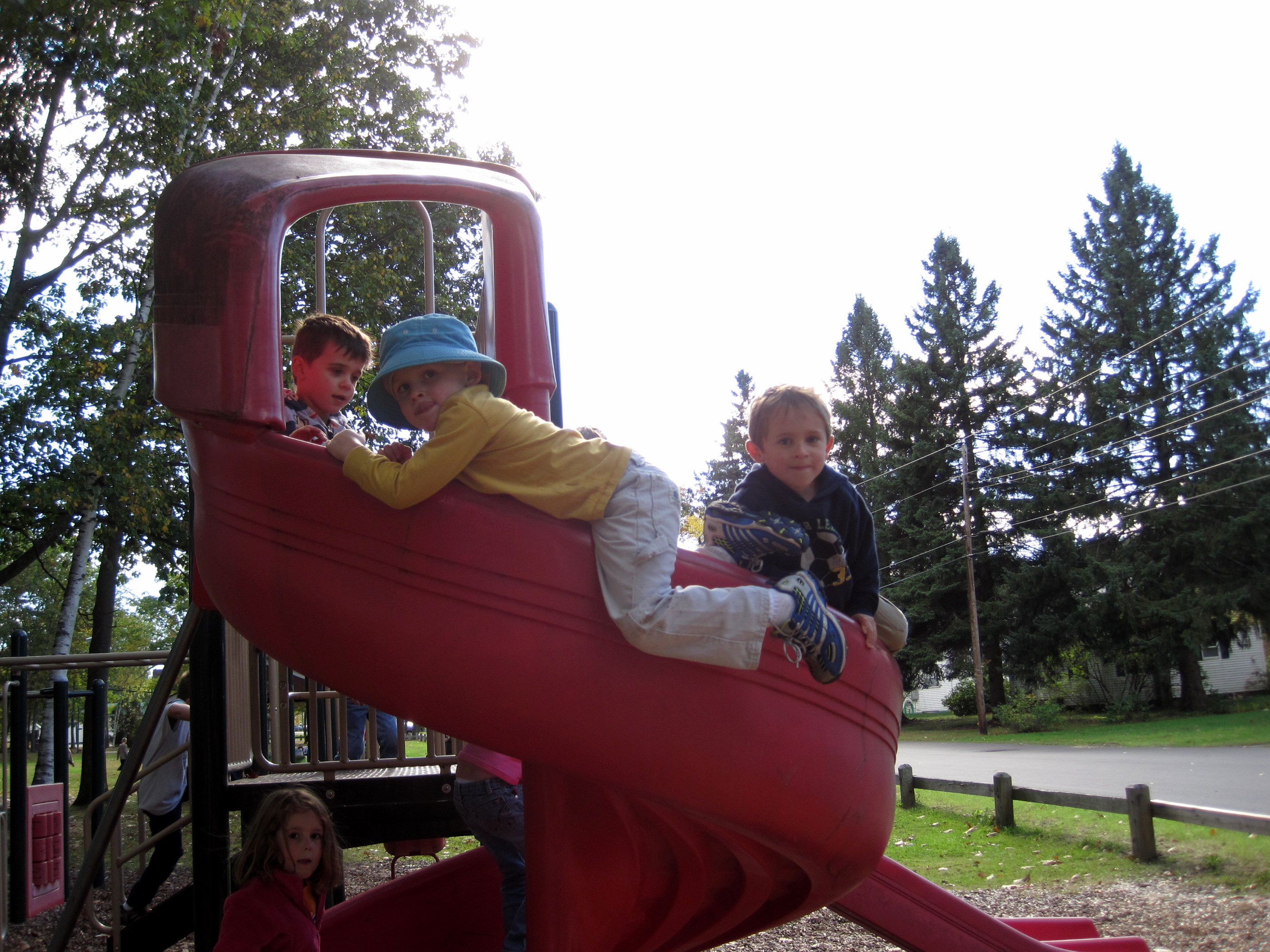 Guess what we did after the hike? We went to a birthday party! The second week of school Lex came home and told me about his new friend Calvin. That weekend he was disappointed because the two boys had arranged a playdate but I told him the grown-ups need to coordinate. I sent a note home with Calvin and never heard back from his parents. Imagine our happiness when we received a birthday party invite this week. Lex picked out a present (which was a big hit!) and wrapped the present himself and was super excited to go to the party. They held it at the playground and it was lots of fun. Running, jumping, eating cake and candy. Fun, fun.