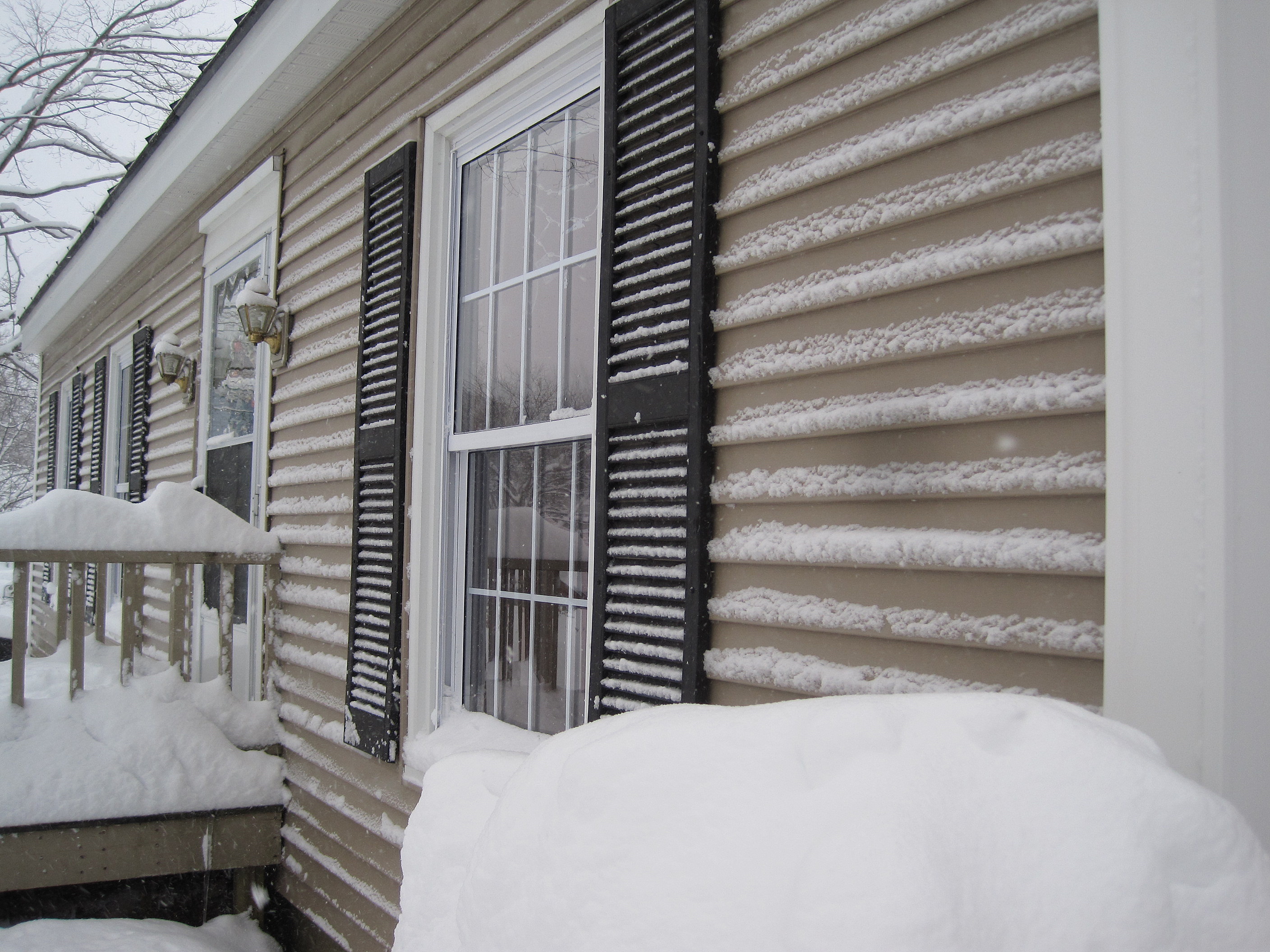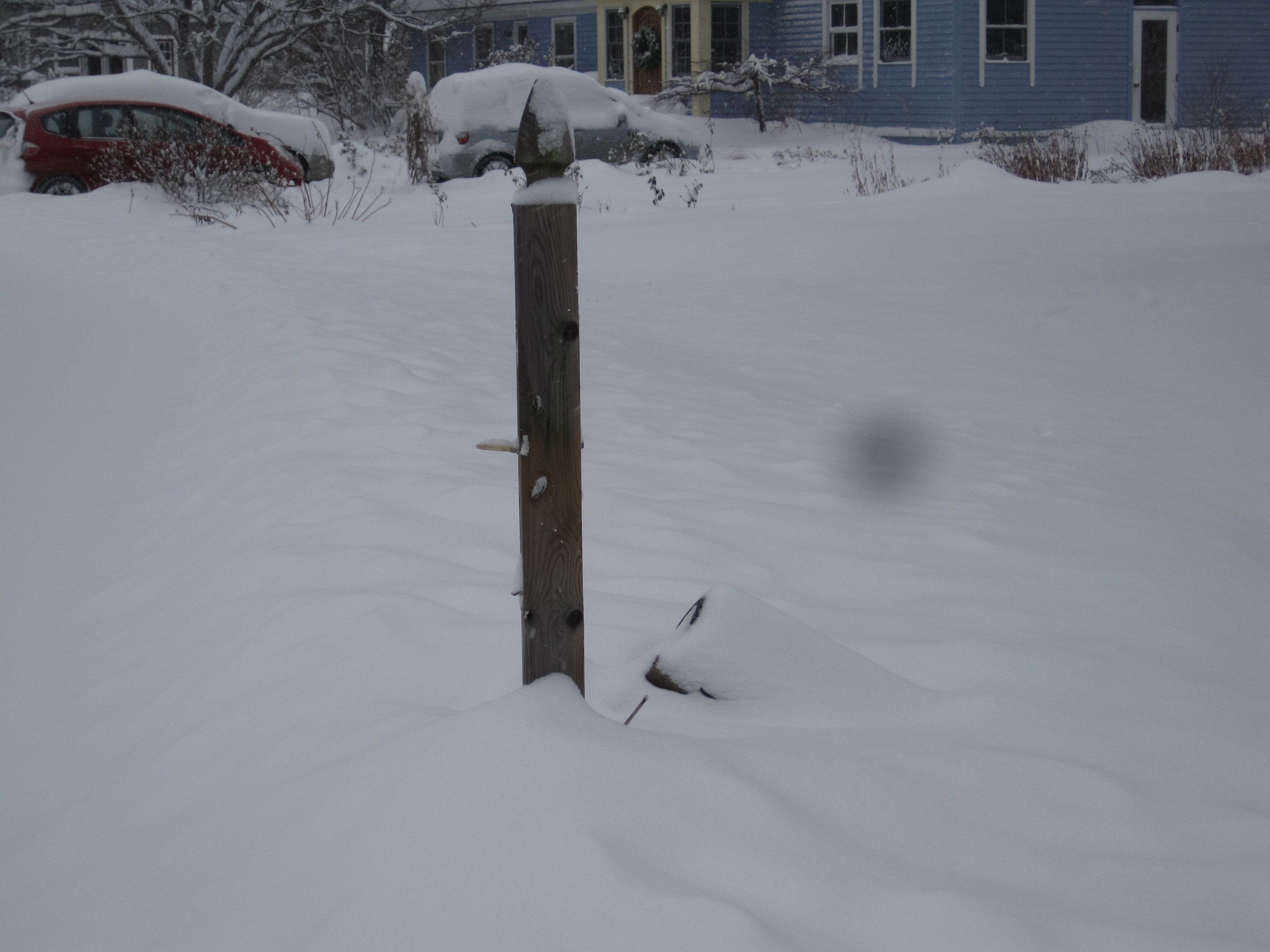 Eve and I went back out for a second round of shoveling in the afternoon. The snow had finally stopped coming down and most of the snow on the garage roof had slid off, so the driveway had a good covering again. No pictures that time though because it was getting dark and cold and I was in a hurry!