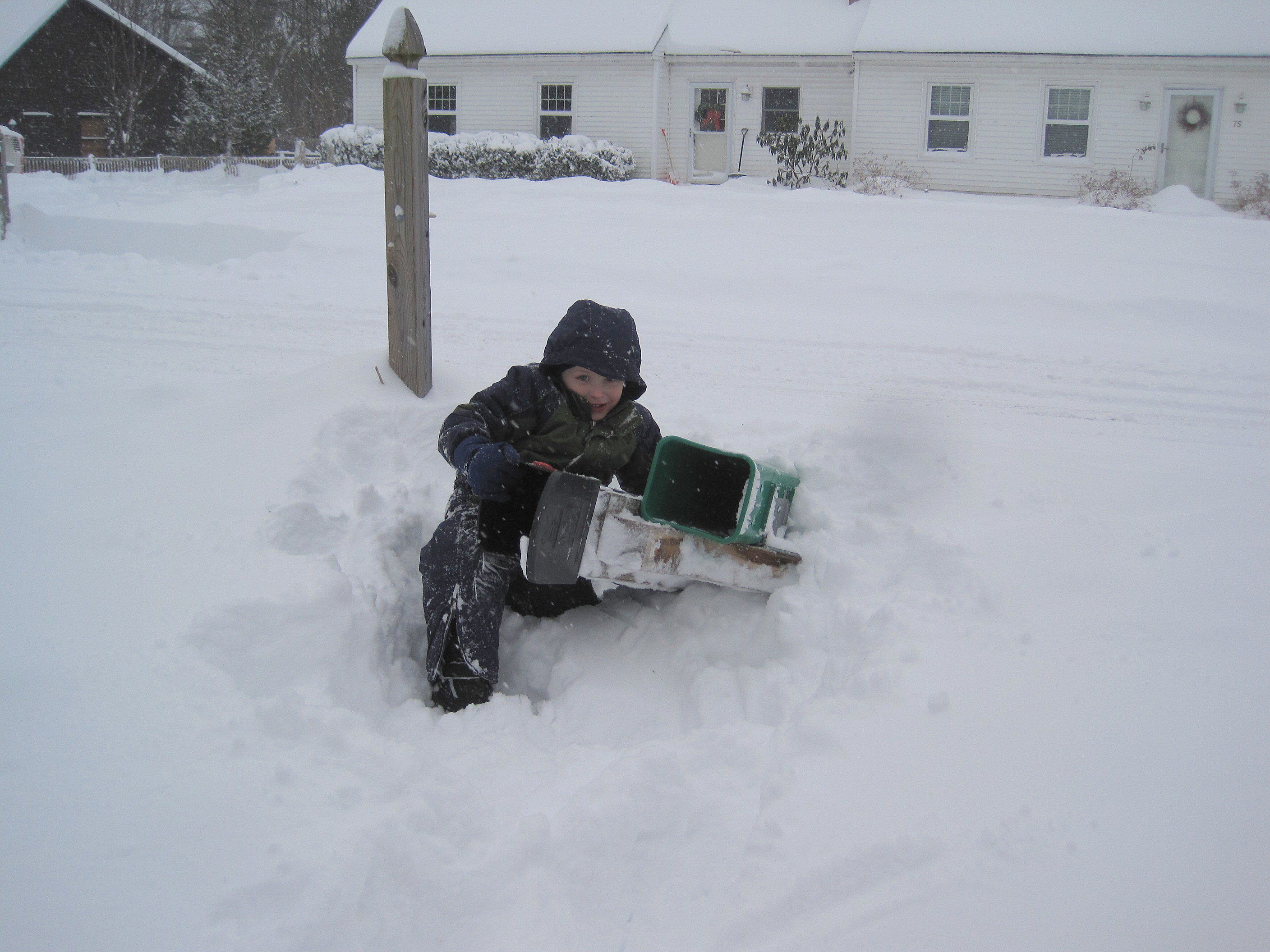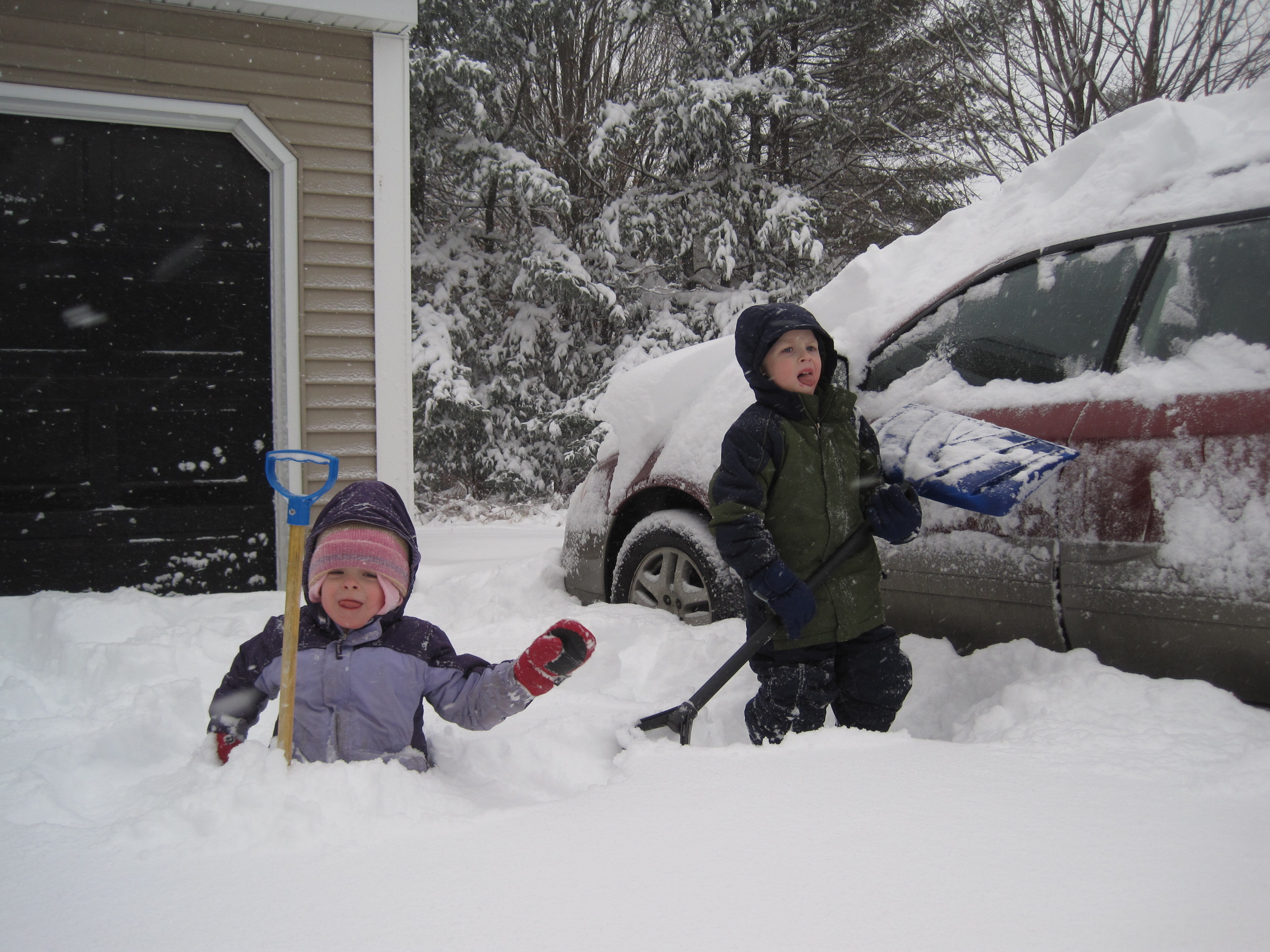 We got our first real snow fall of the season! I think it’s about 18″ (though I didn’t really measure). We went to bed with nothing and woke to a winter wonderland. Awesome! After breakfast we all bundled up and headed out for shoveling, digging, sledding (attempts anyway) and general merriment.