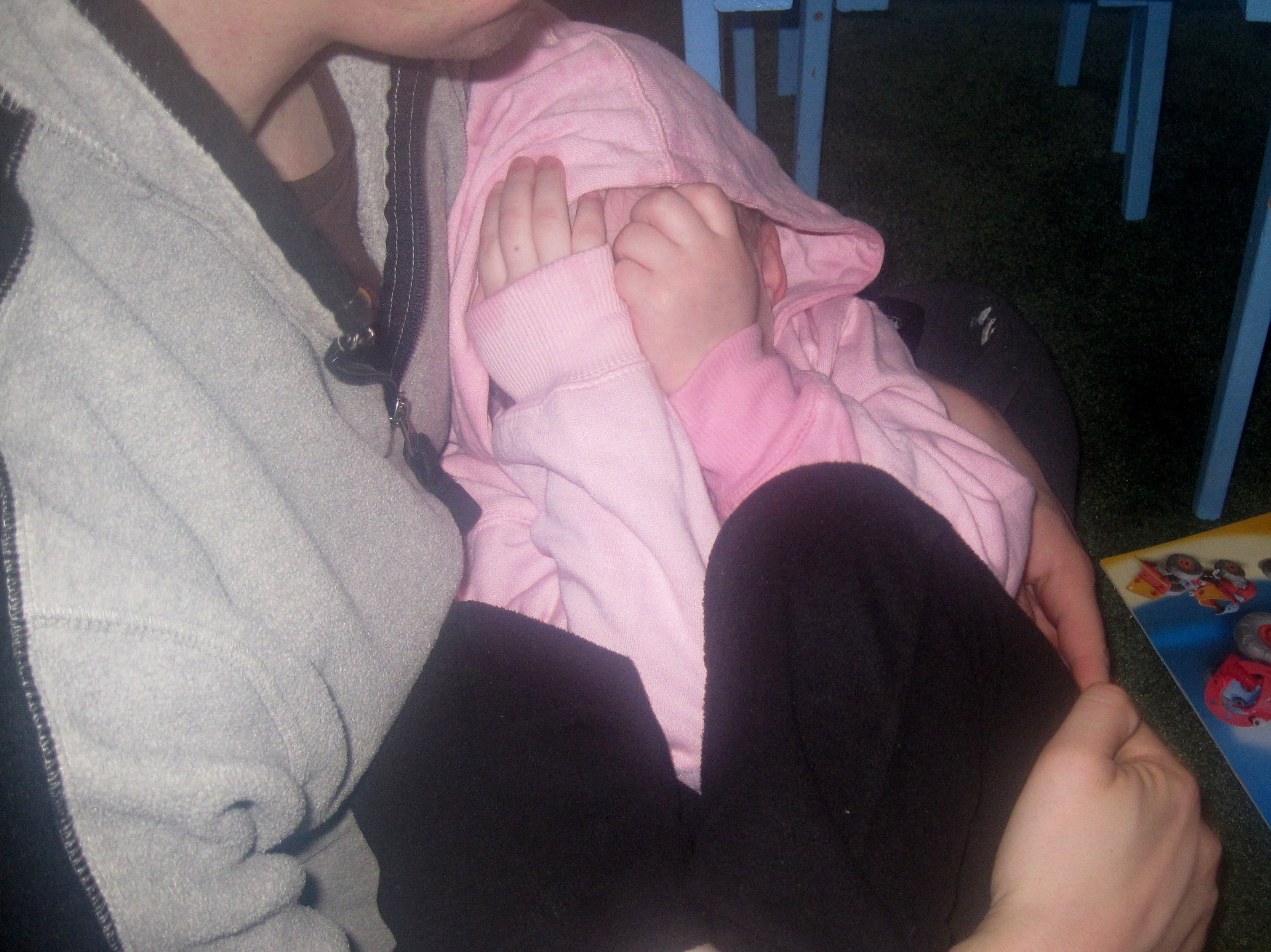 Eve looks so adorable in her new sweatshirt. I wanted to take a picture, but she wanted to cuddle in Alan's lap in peace. She looks like such a baby here, until you realize that there's another whole half of her in legs not in the picture!