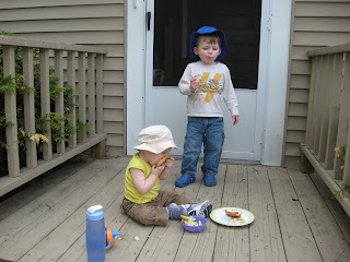 the porch this afternoon. Eve dove face first into Lex’s bagel.