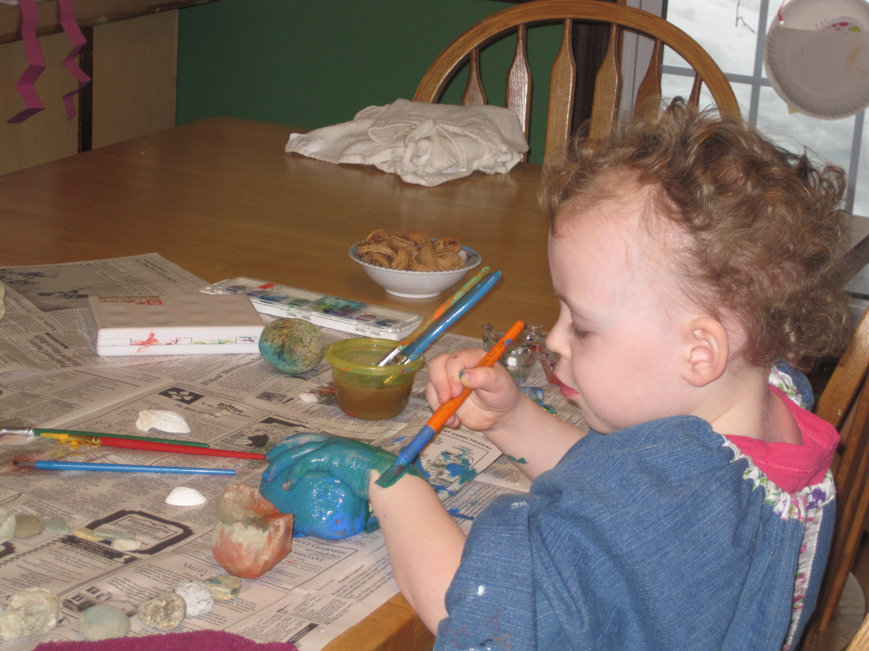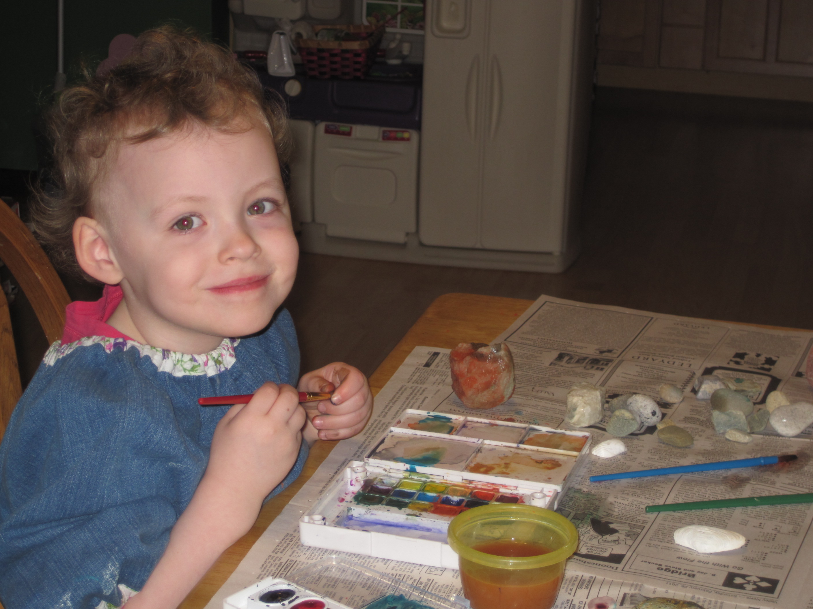 My friend came over the other day to take some pictures of Eve painting rocks for a story in a magazine. Eve HAPPILY obliged! She loves painting rocks :)