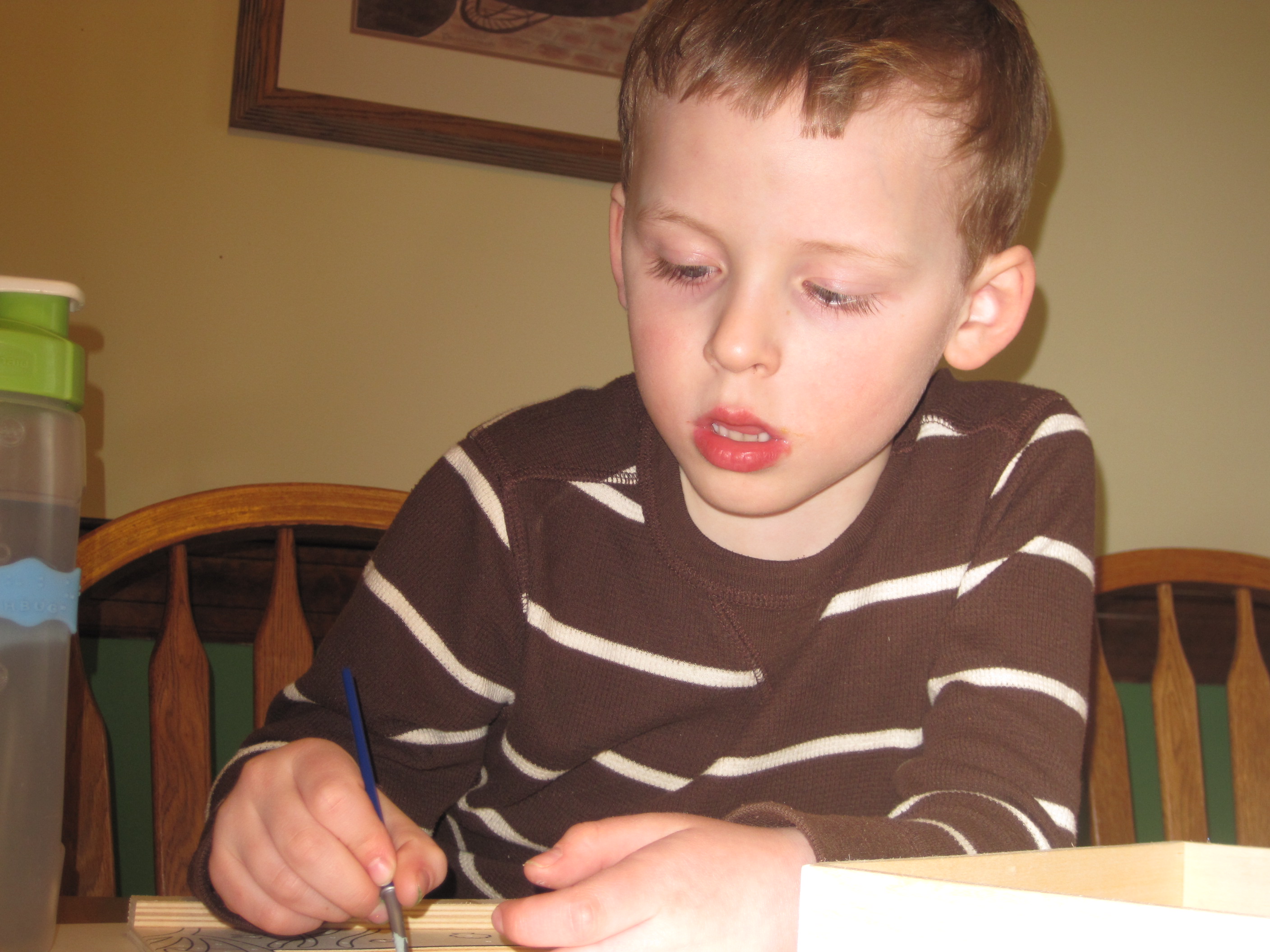 Friday afternoon the kids got busy with paint-by-number. It has been on the counter since Eve’s birthday and they having been super eager to do it. I need to be in the right mood for painting though, particularly for them painting! I finally let them do it on Friday and they were thrilled.
