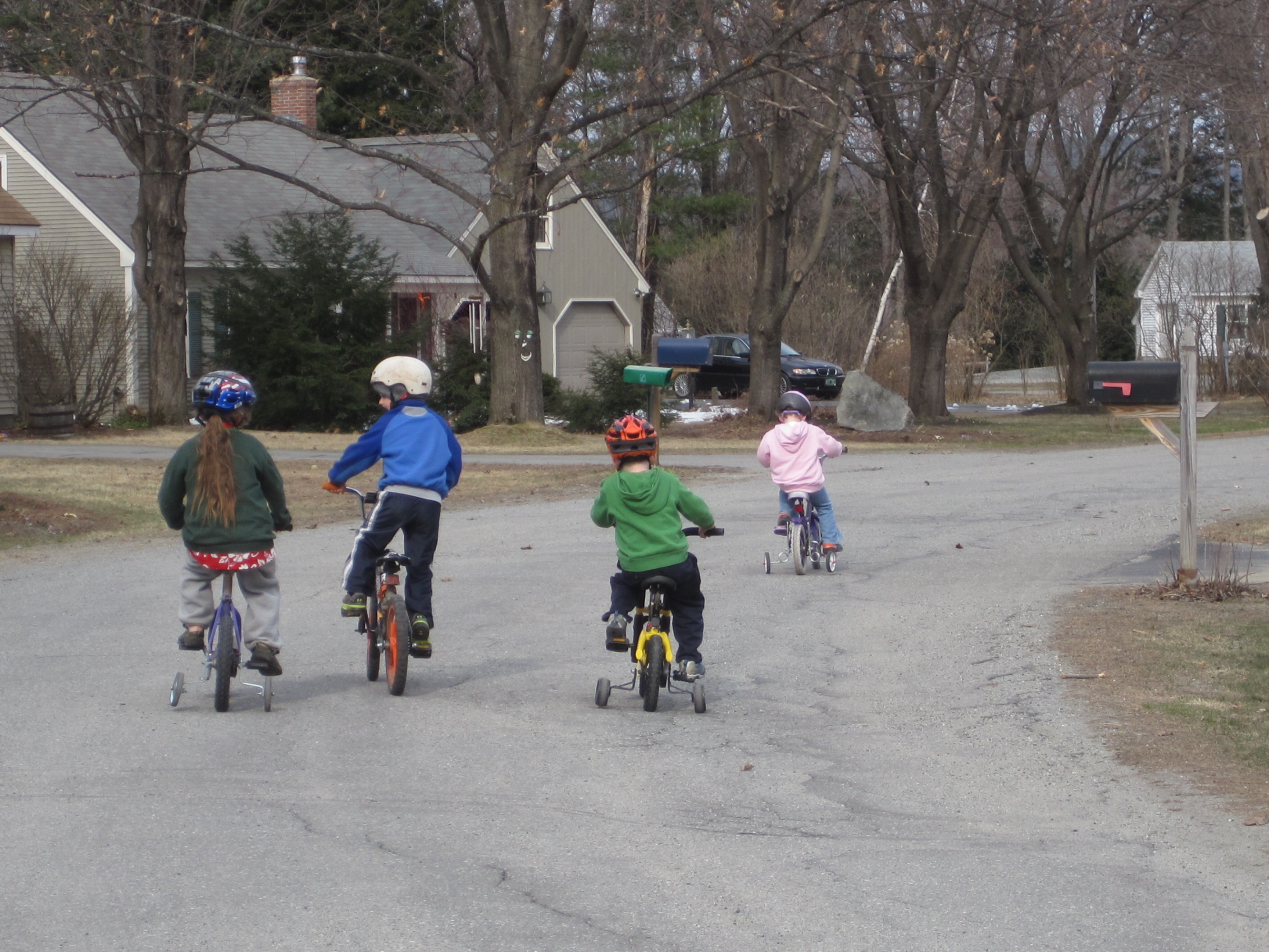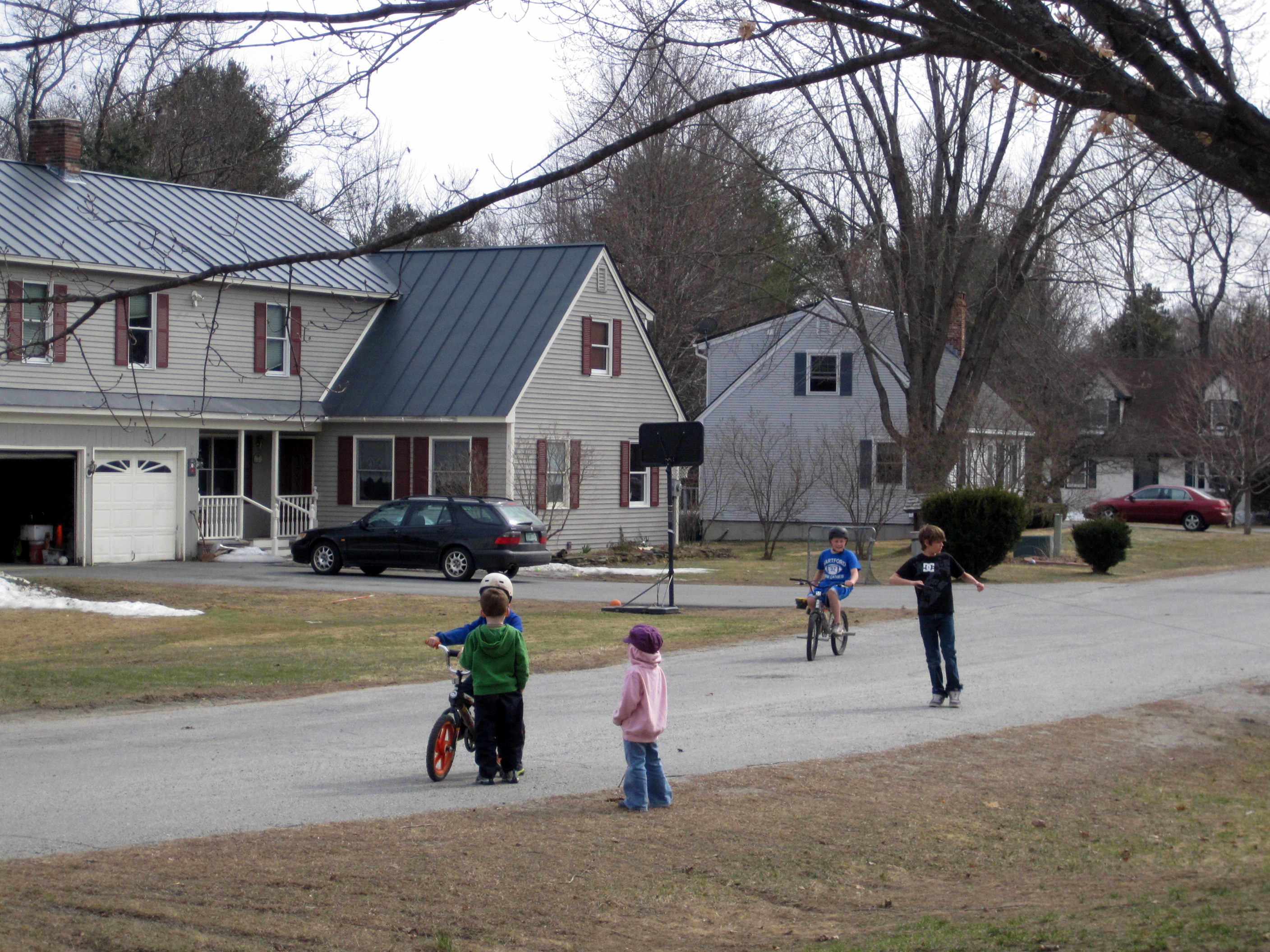 Back home, after a forced quite time (because I was exhausted!) we went outside to enjoy the beautiful day. Beautiful! Pretty quickly a neighborhood crowd drew. At one point we had four younger kids in my yard and six or so older kids (upper elementary/middle school) shooting hoops across the street. This is why we moved here. It was so nice.