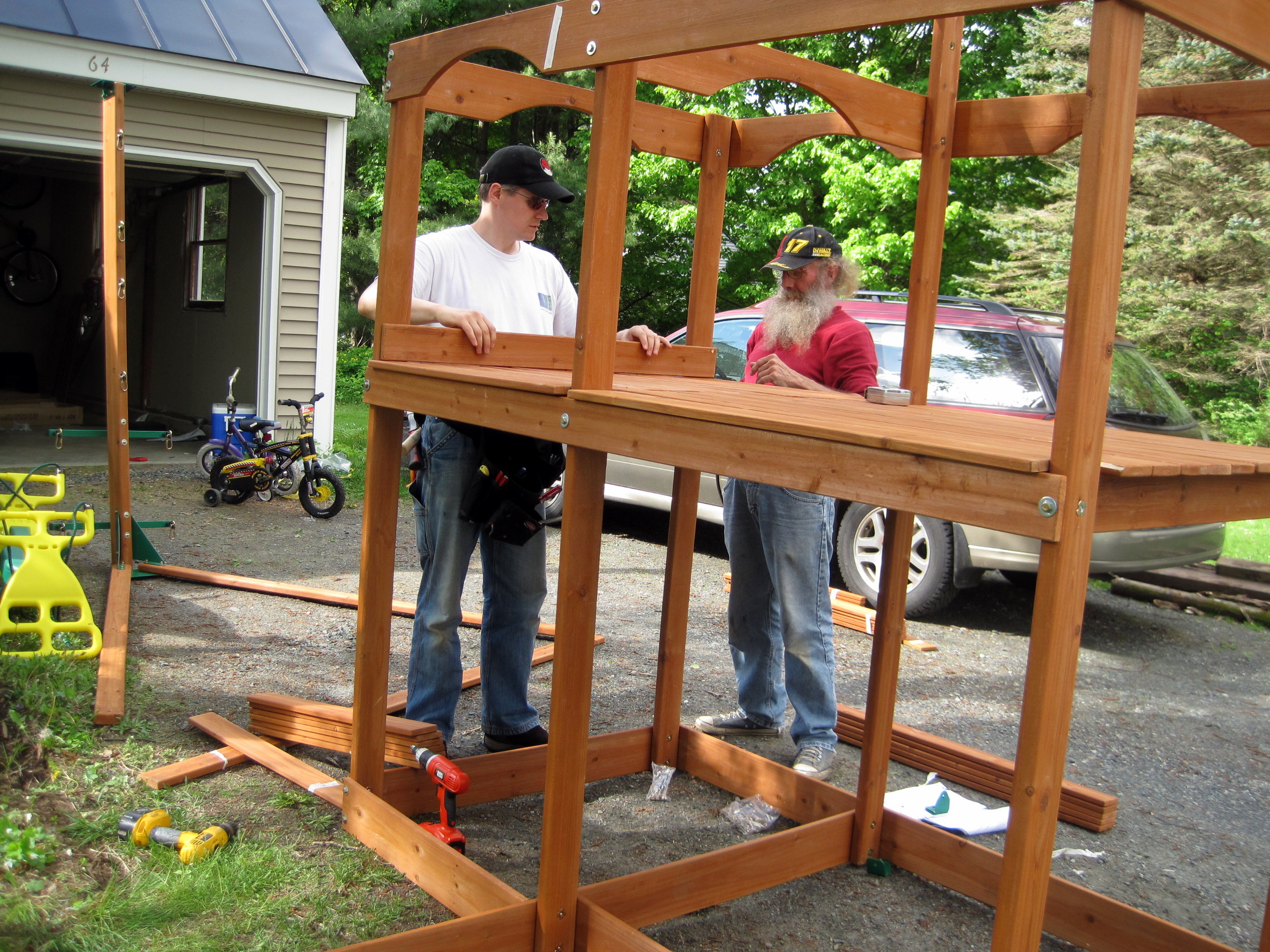 The women, of course, did lots of work today too, it just wasn’t as sexy at this swingset construction! But just until you see the cake tomorrow!