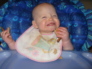 in each hand. I tried to get a picture of her chewing on them,