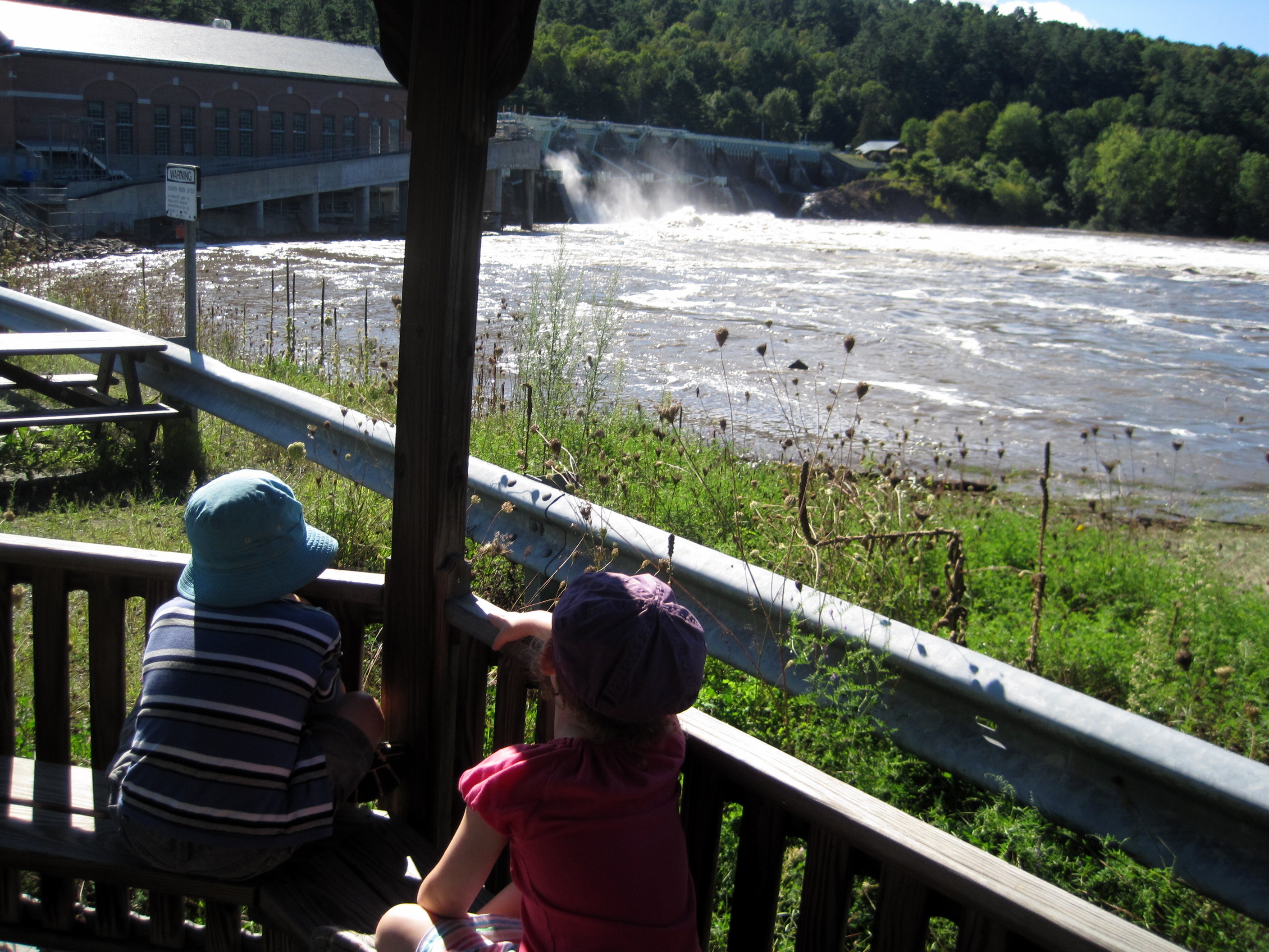 We had a great time. The weather was beautiful, we met a few friends along the way, the water was calm, the dam was releasing and therefore quite interesting to see, and I let them eat ice cream along the way. What more can you ask for?!