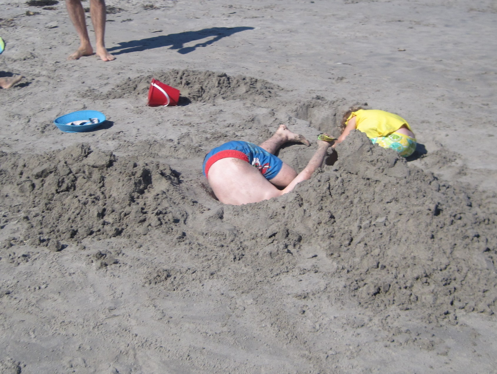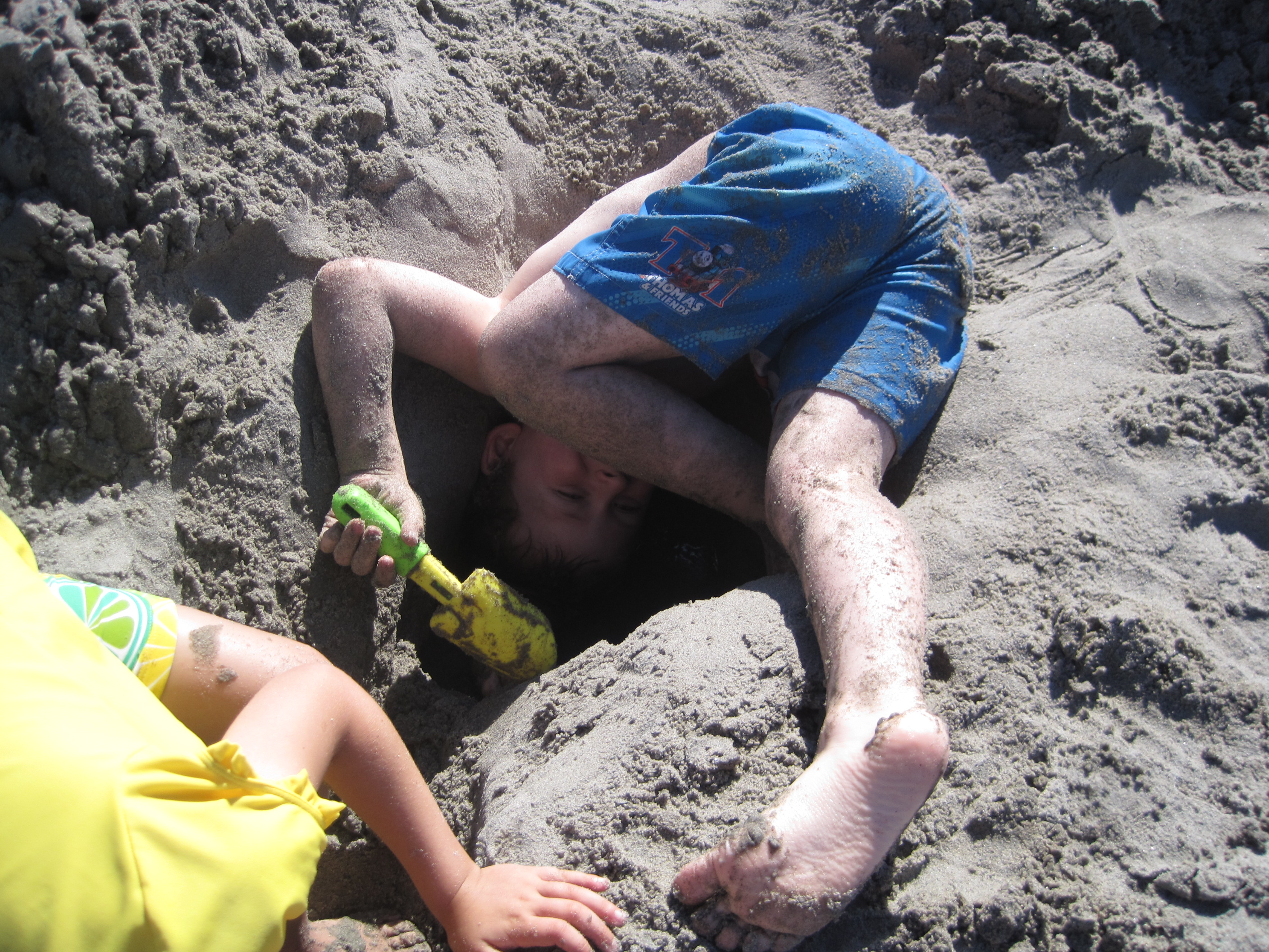 The kids made friends with some older kids who were building very deep holes. At one point I glanced over at Lex and saw this.