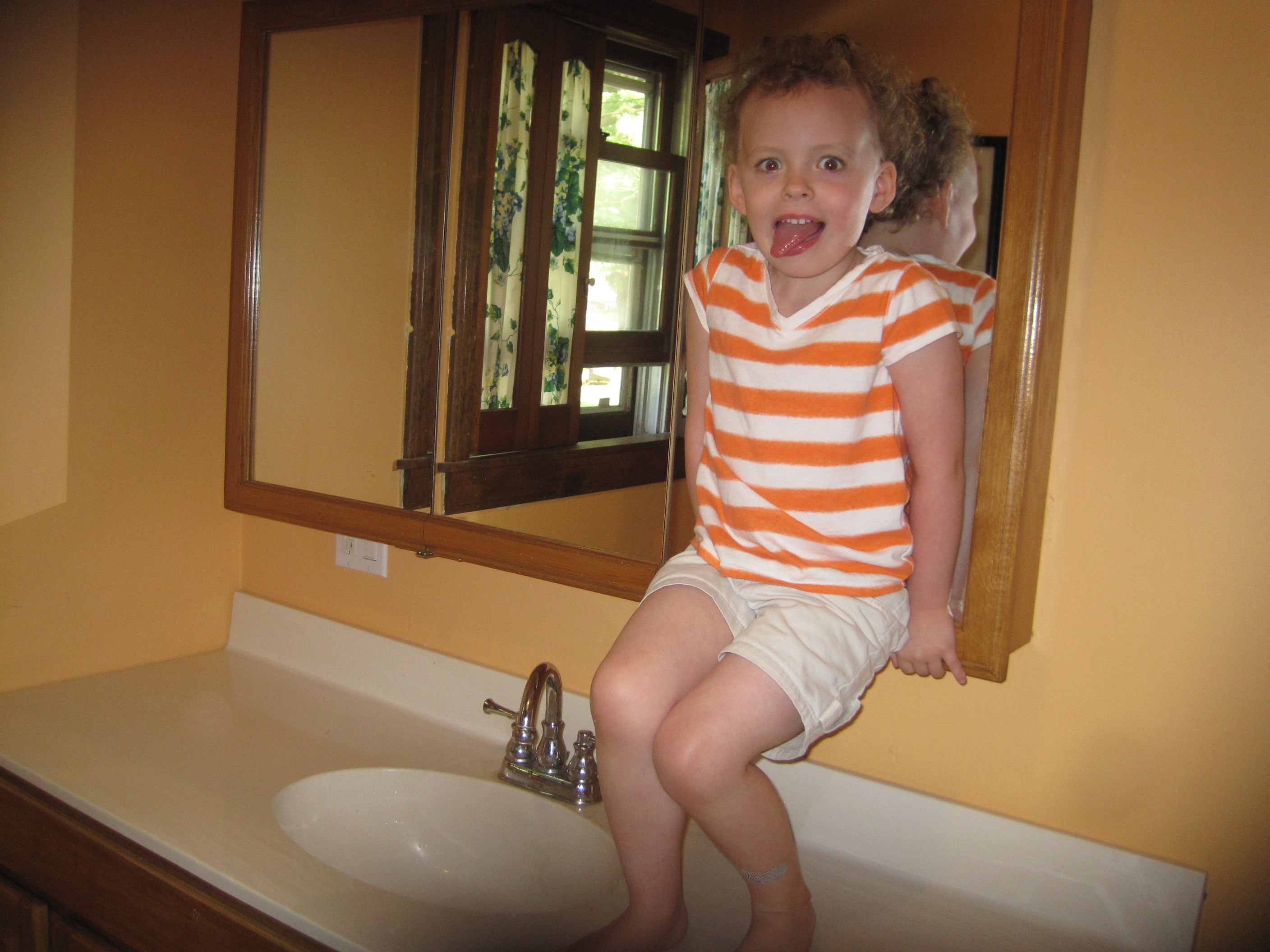 They almost made it through both bathrooms before being pulled away by the excitement of jumping on the beds. I’m supposed to be sweeping and mopping the kitchen/dining room right now, but I got pulled away by the excitement of my little laptop :)