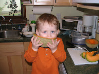 cantaloupe. Lex LOVES cantaloupe and picked up 1/4 of the melon