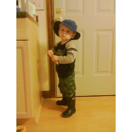 Time for playgroup… Posted on August 14, 2007 by admin Yes, it’s August and yes, those are his (mismatched) pyjamas and rain boots. And yes, he chose his outfit for the day :) He’s got my old cell phone in his hand because he’s “just gonna make a call real quick.”