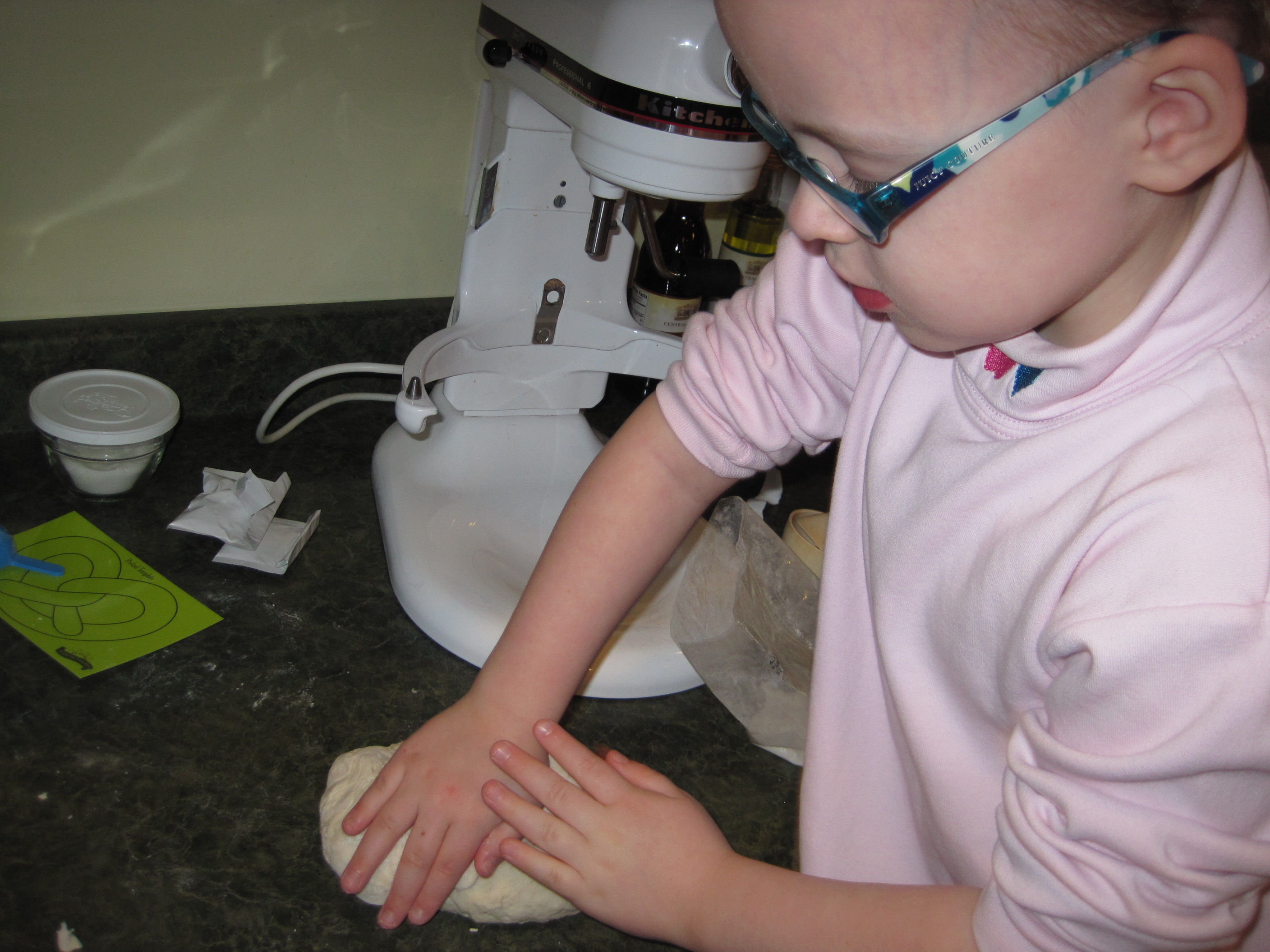 Eve INSISTED she knew how to knead dough.. until she got her sweet little hands on it, then her story quickly changed and she was asking for help. :)