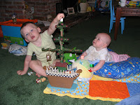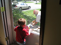 reads a story to Grandpa Tom and Uncle Barney as they build us