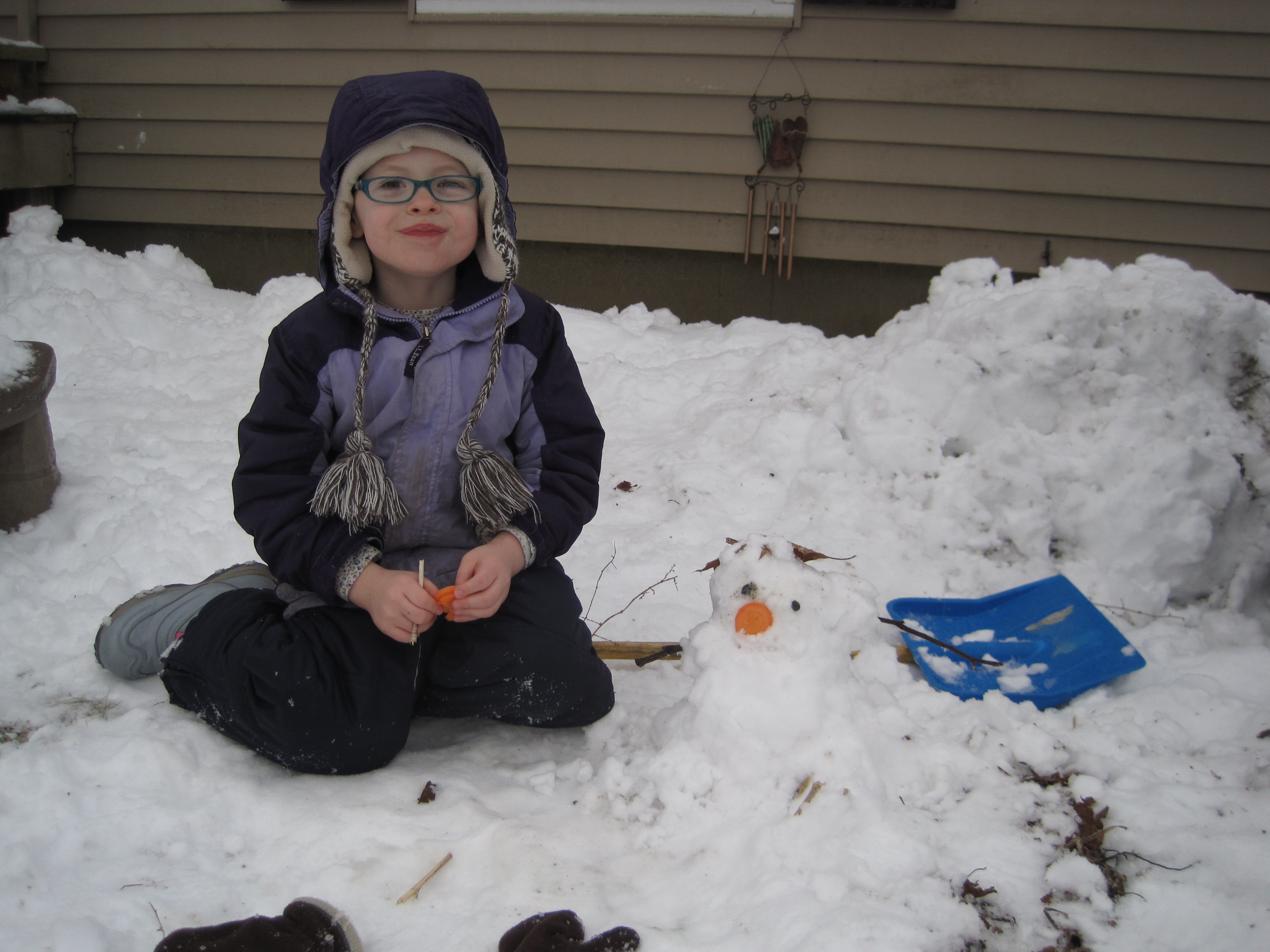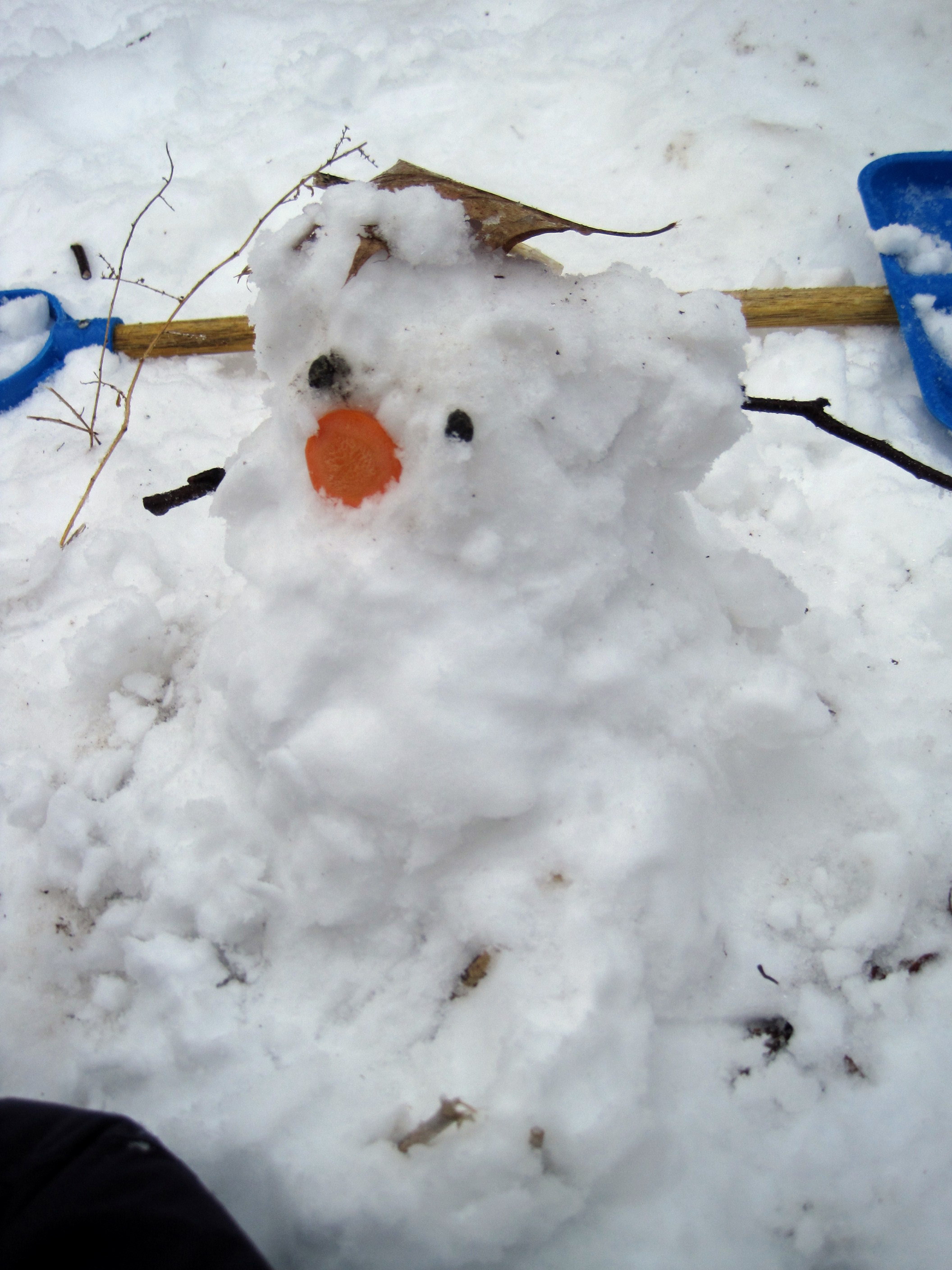 Eve made a little snowman one morning. Actually it's a snowman version of me as a baby. She is very creative. She also wanted to make snowman version of my parents with me, but it started sleeting and I convinced her to delay that project.