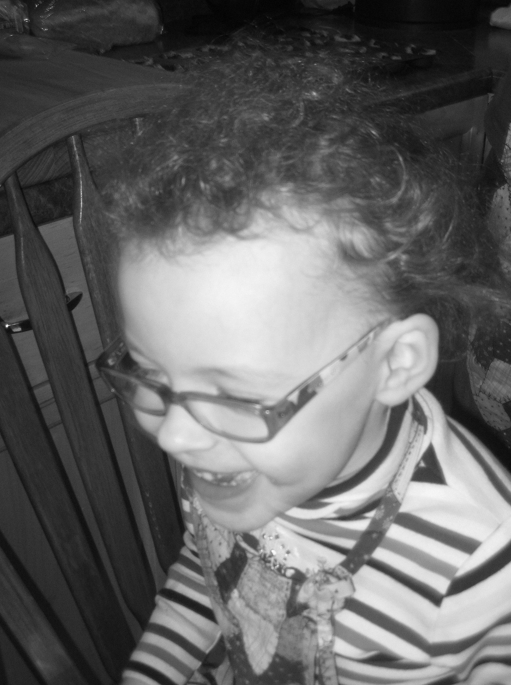 I don’t even have any good pictures of her these days because she hides from the camera, but this one shows her really having fun this morning, laughing with me.