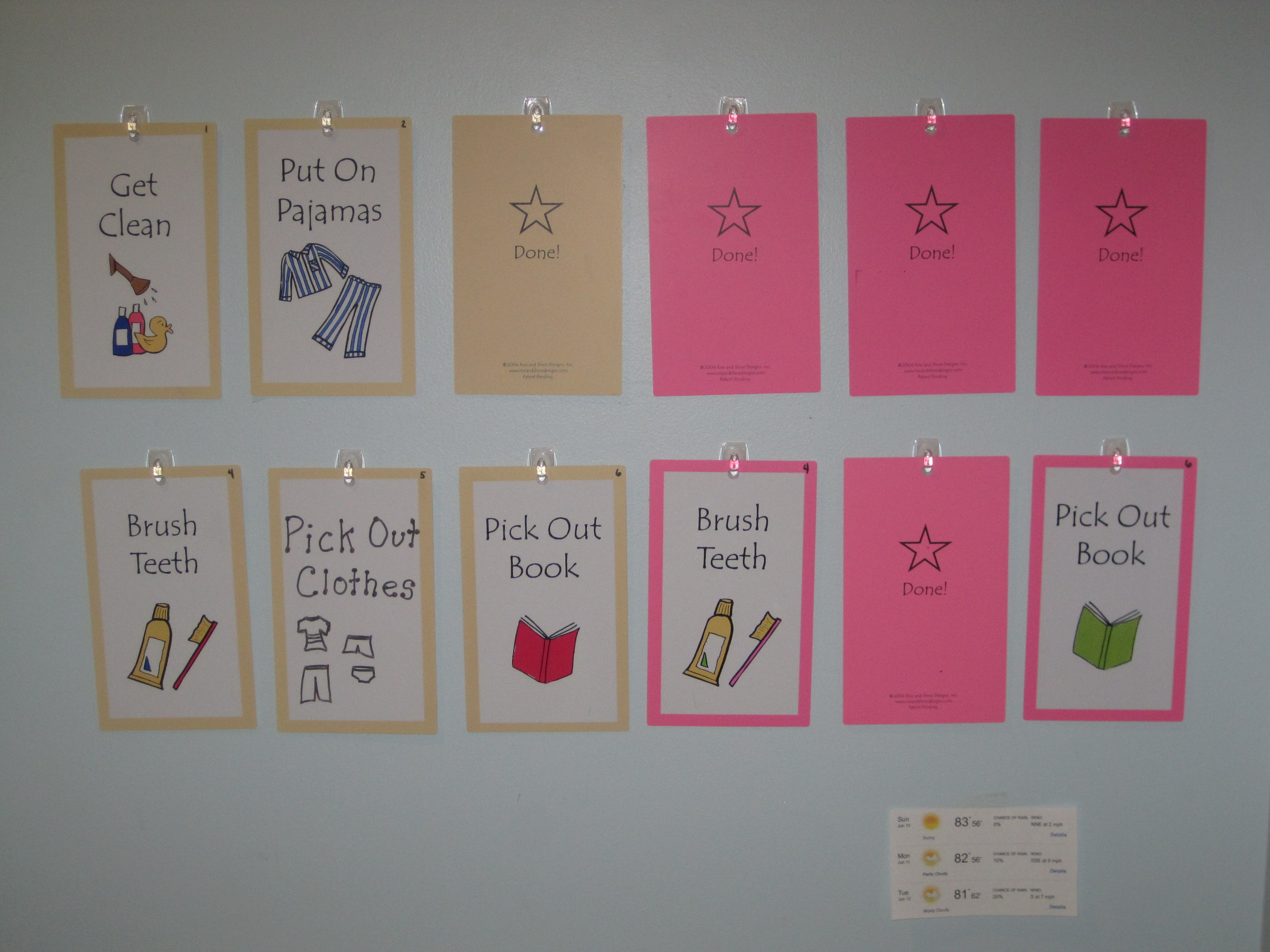 I bought these the other day because bedtime was, once again, making me crazy. The kids LOVE them. So far, after two nights, they are working well. I also taped up the weather forecast for a few days at a time so they can pick out clothes accordingly. :)