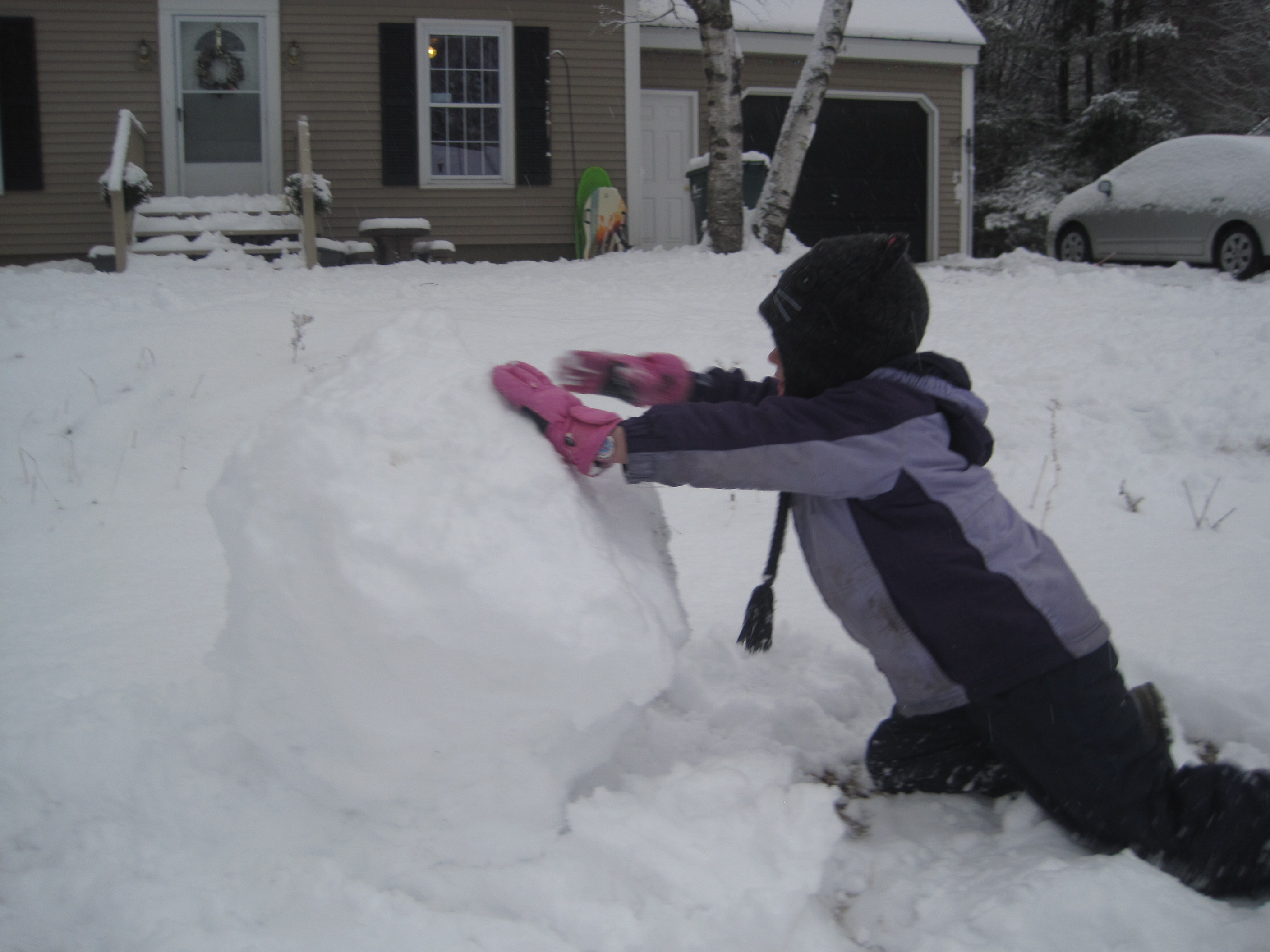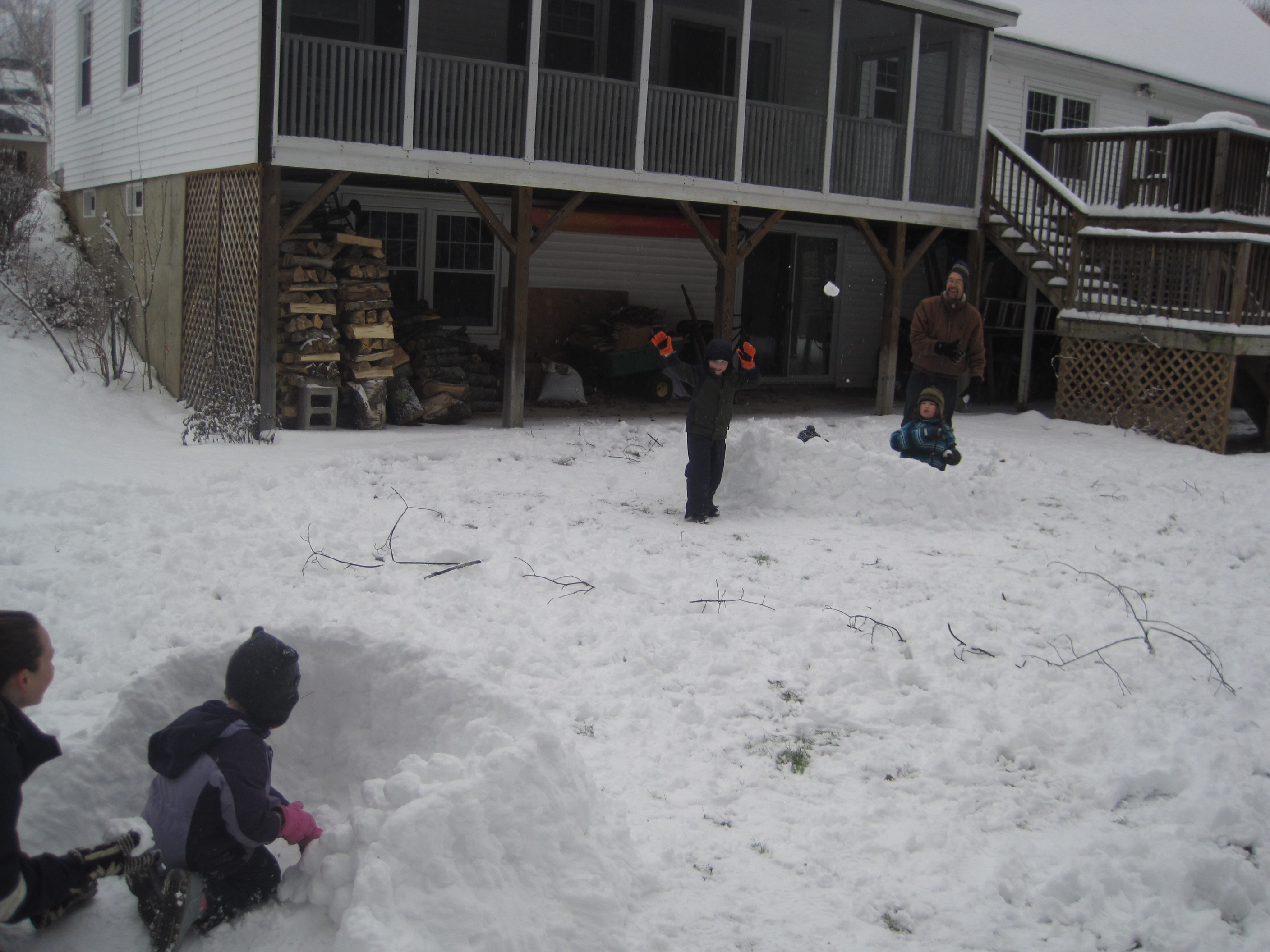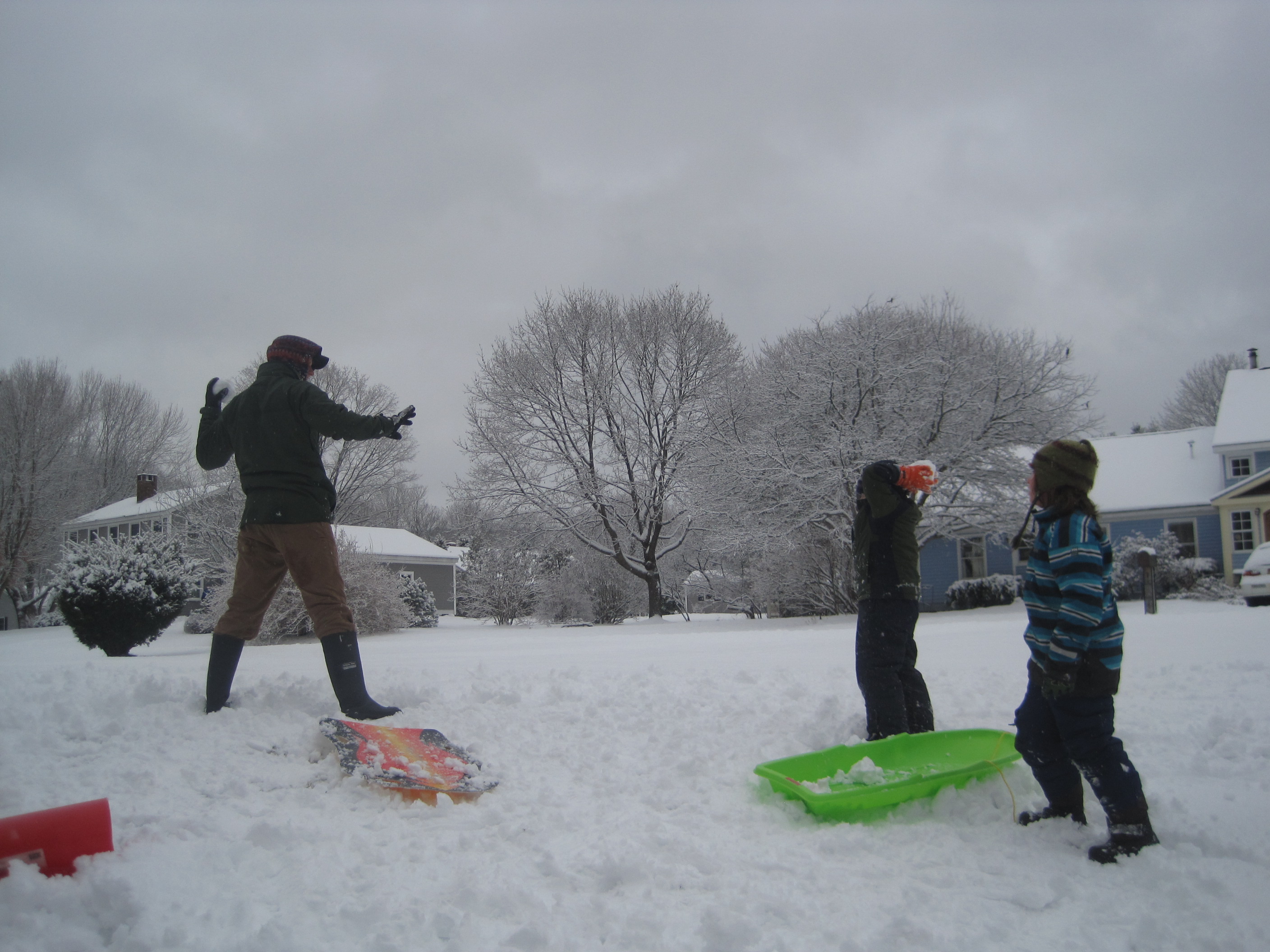 Today was the first real snowday of the year! Mother nature snuck one in before the end of the year. We went out this morning to shovel and ended up making three snowmen, sledding on the neighbor’s hill, and had an awesome snowball fight with multiple neighbors! Eve was so happy that Emily, our neighbor and their favorite babysitter, was home. She invited Emily out to play and Emily said yes! Eve was very happy! :)