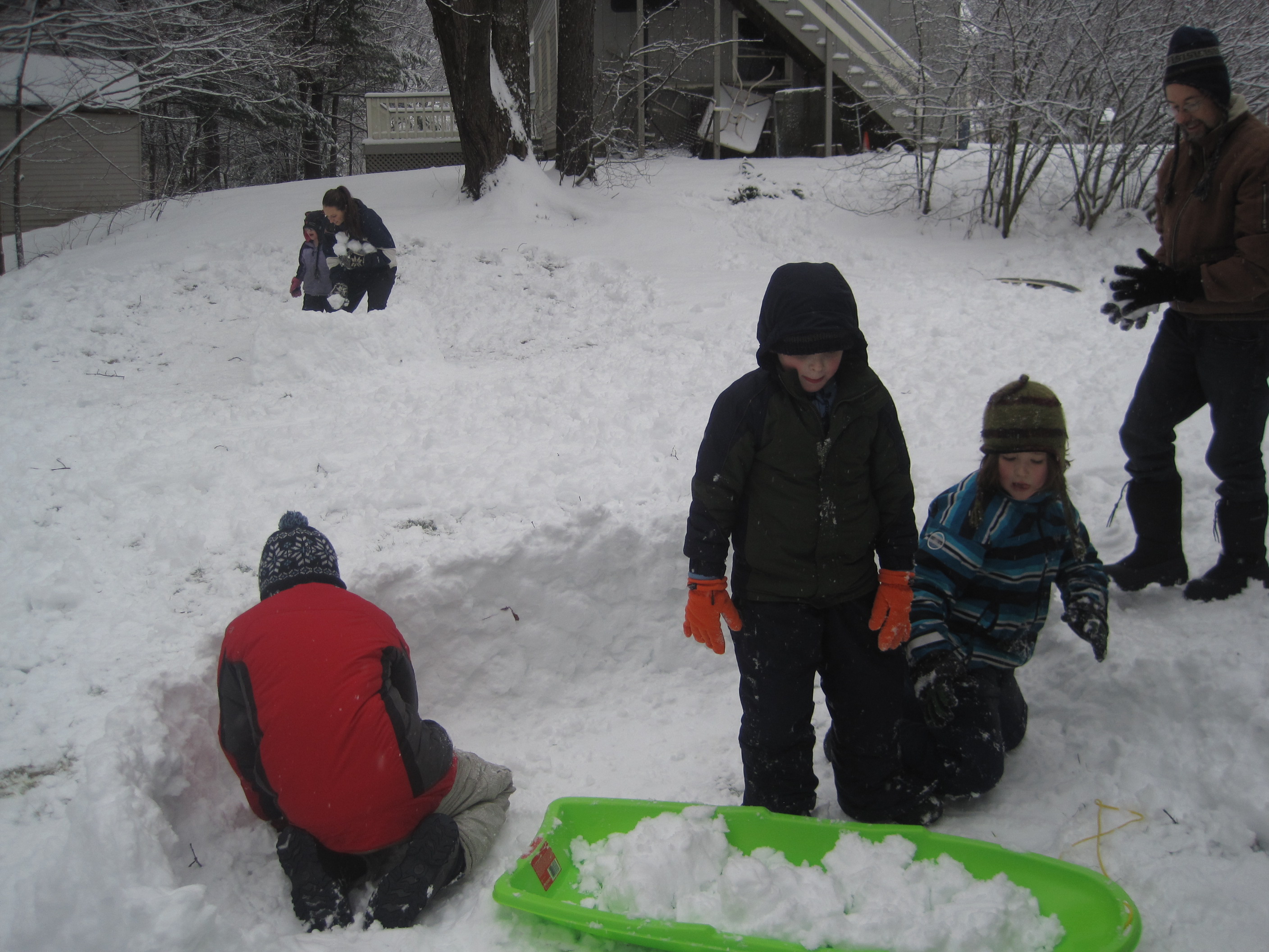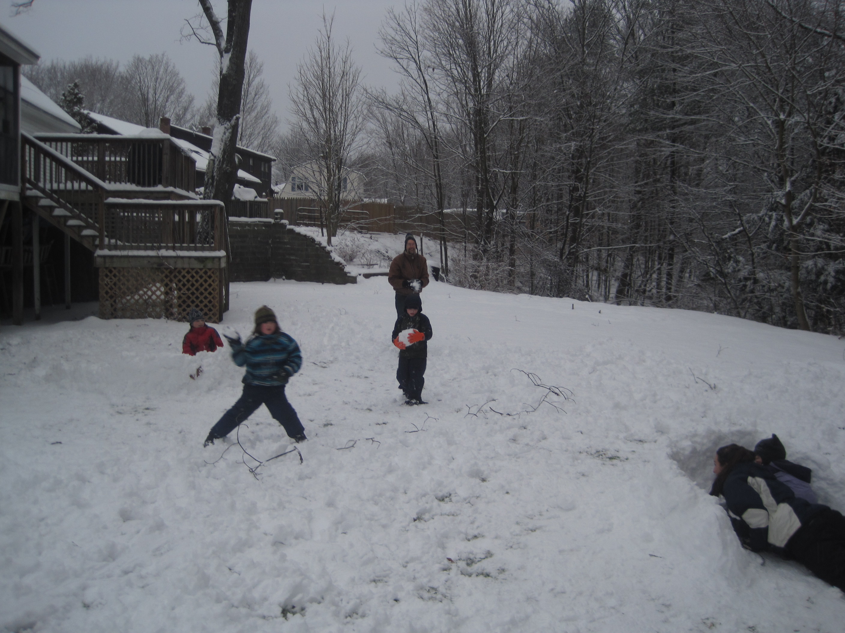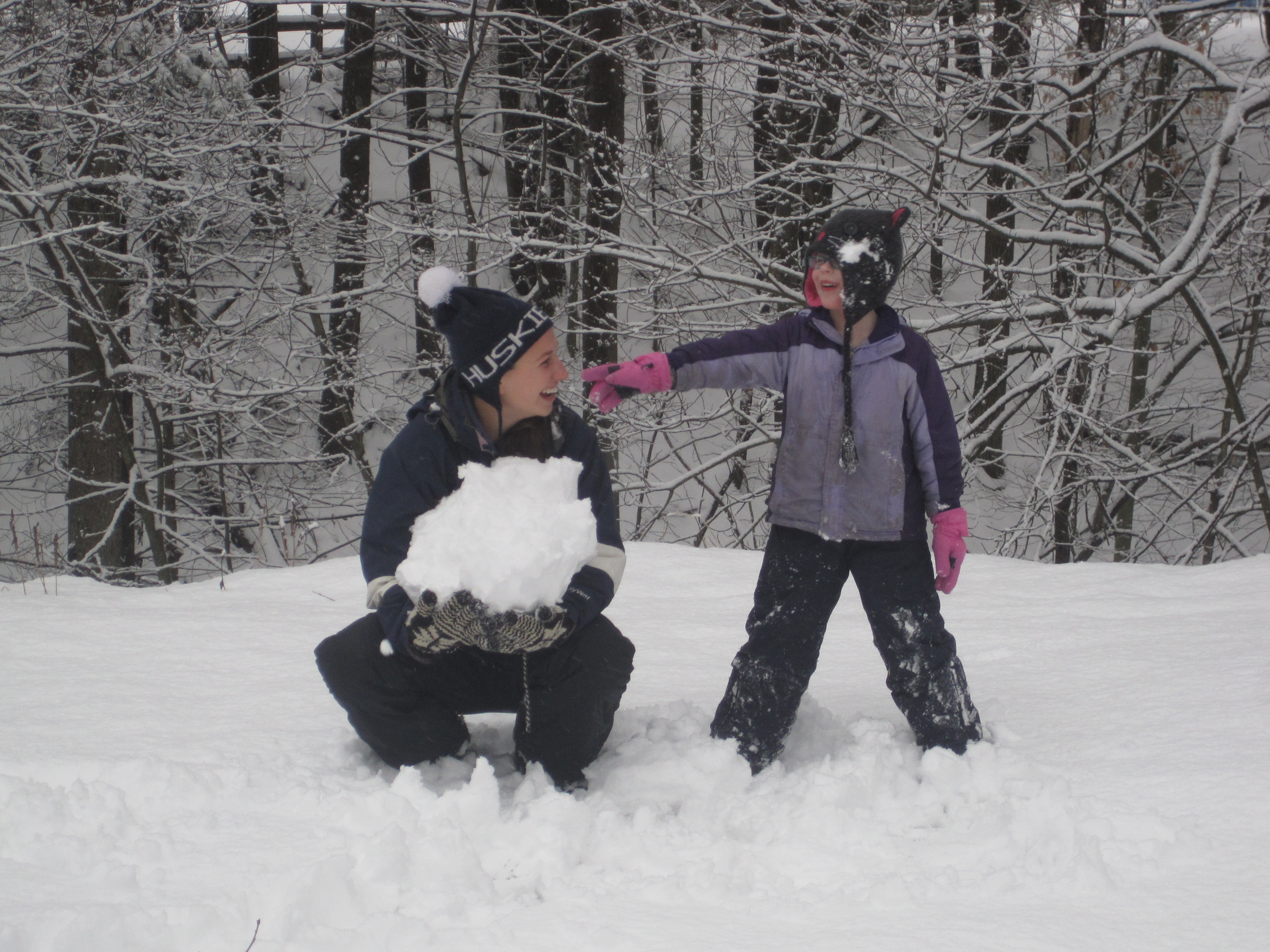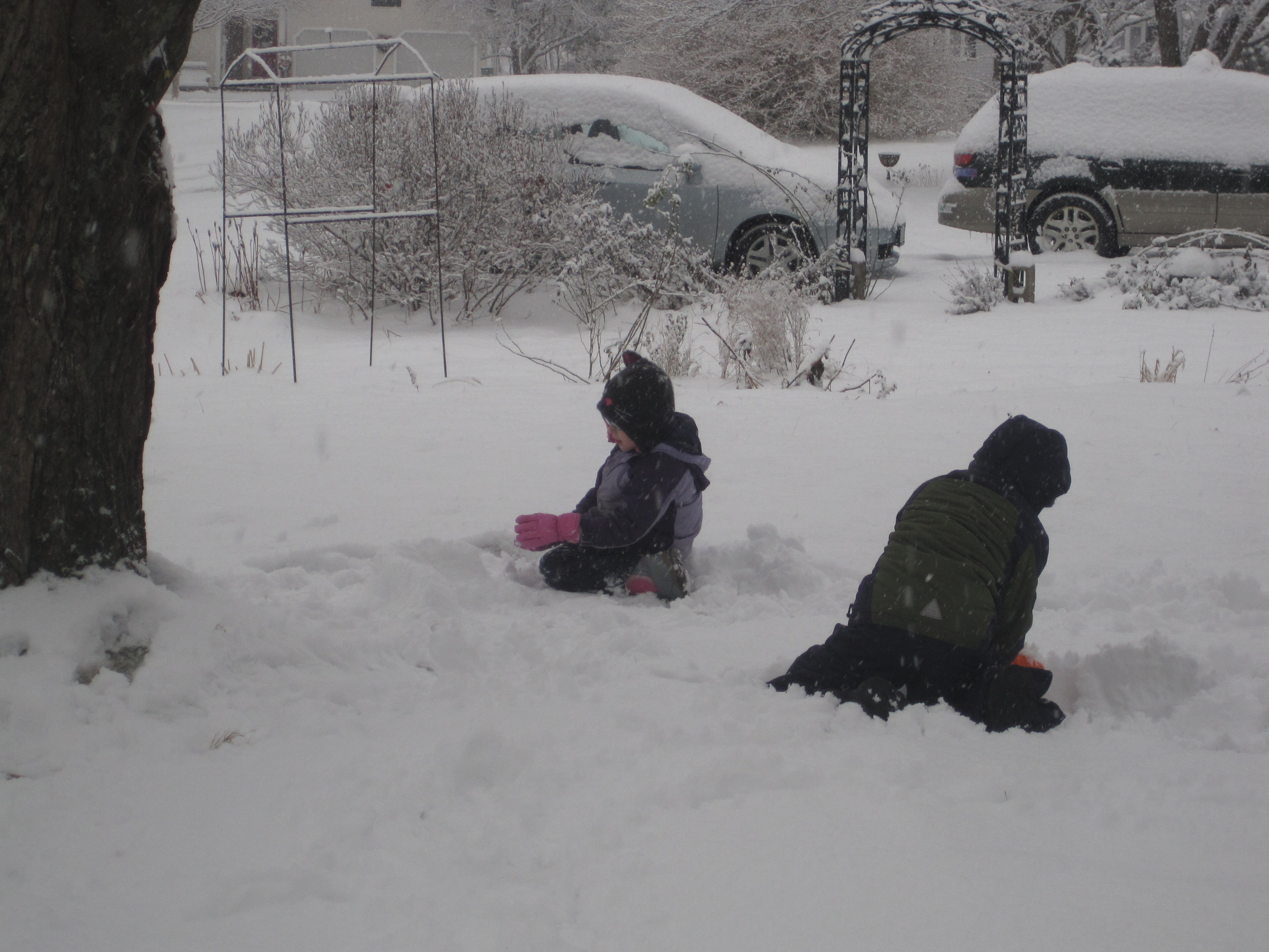 Today was the first real snowday of the year! Mother nature snuck one in before the end of the year. We went out this morning to shovel and ended up making three snowmen, sledding on the neighbor’s hill, and had an awesome snowball fight with multiple neighbors! Eve was so happy that Emily, our neighbor and their favorite babysitter, was home. She invited Emily out to play and Emily said yes! Eve was very happy! :)