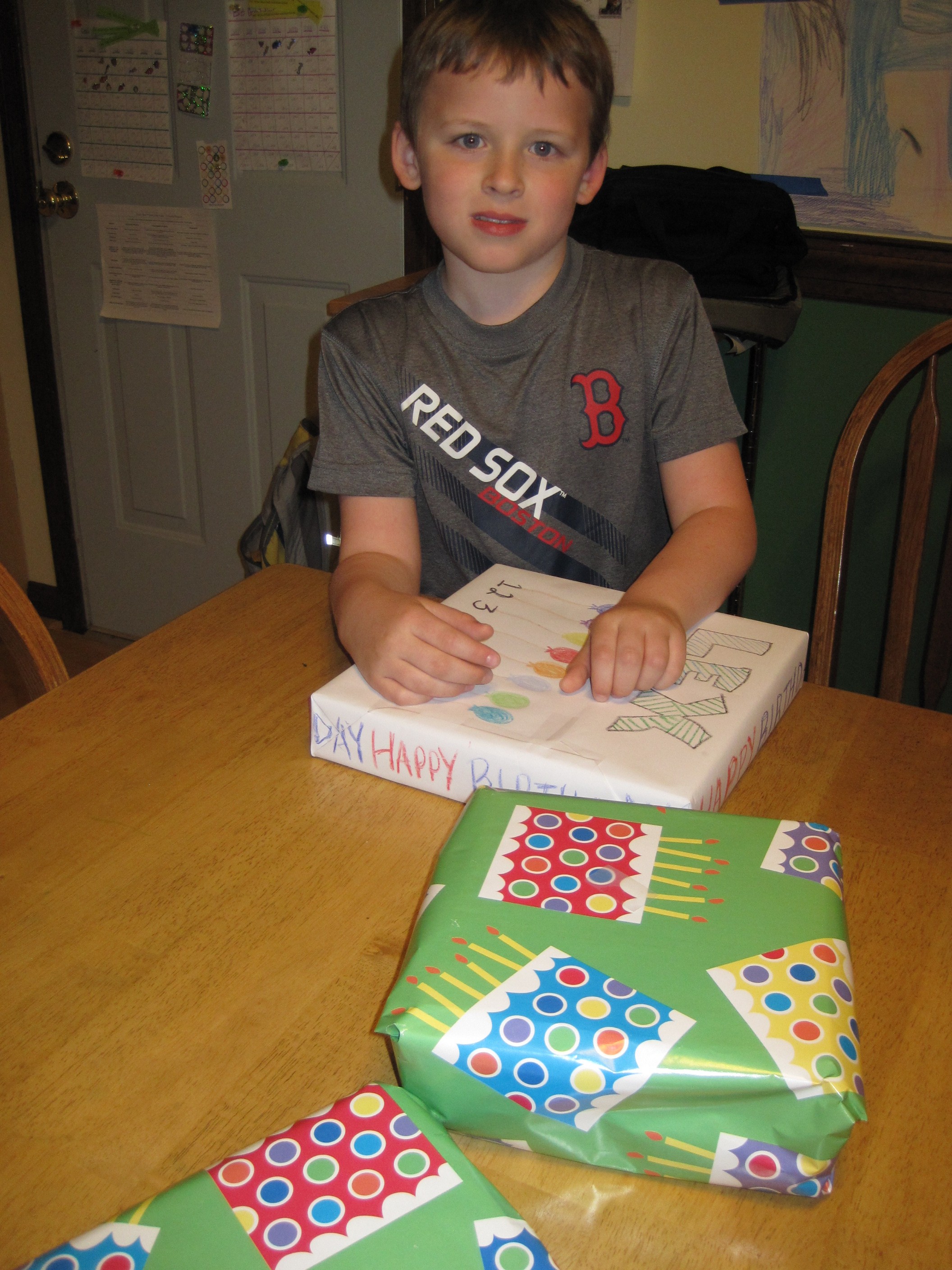 This morning came, bright and early, and my baby turned NINE! Nine whole years old and handsome as always. He had a few little presents waiting for him on the table.
