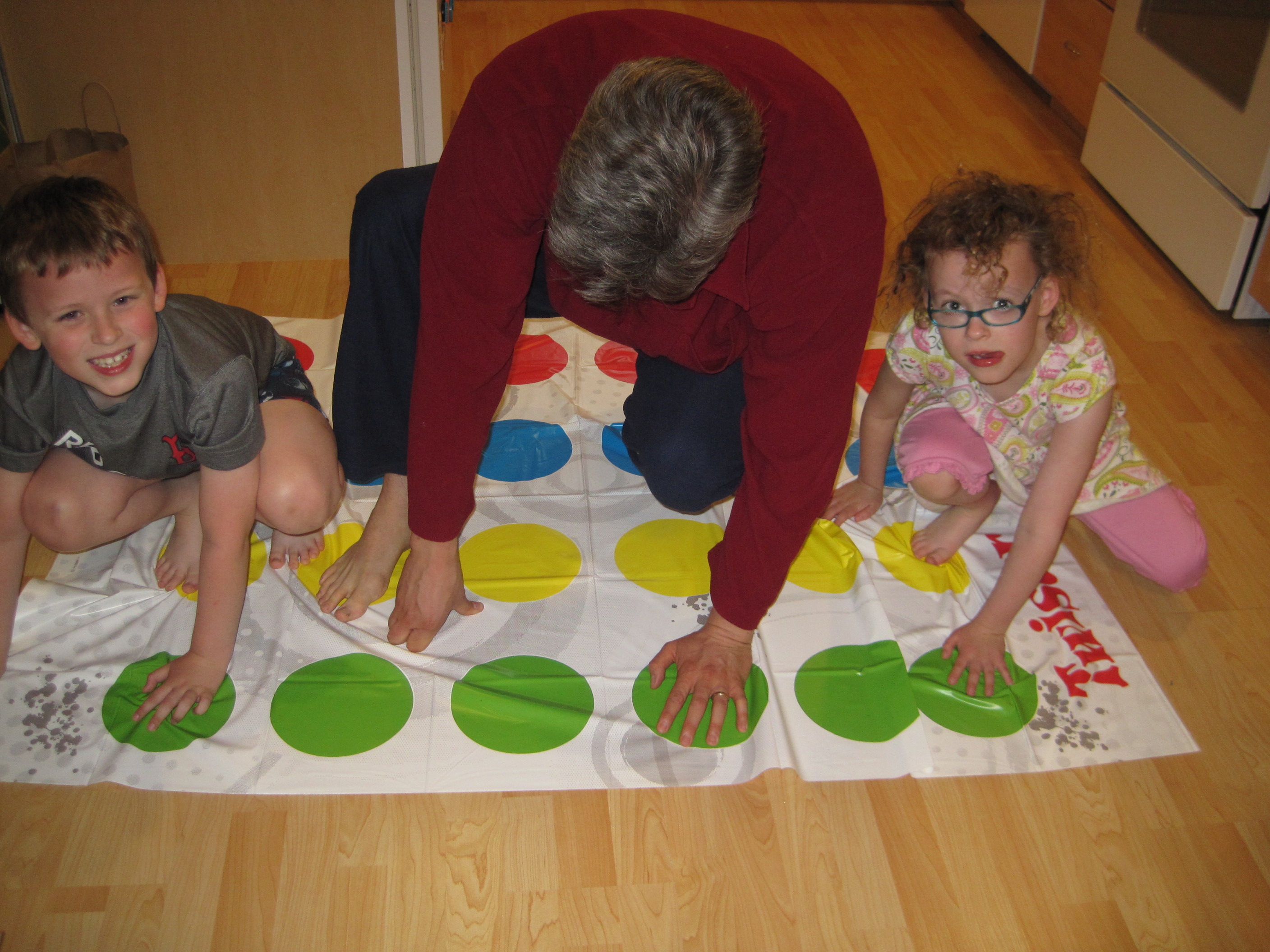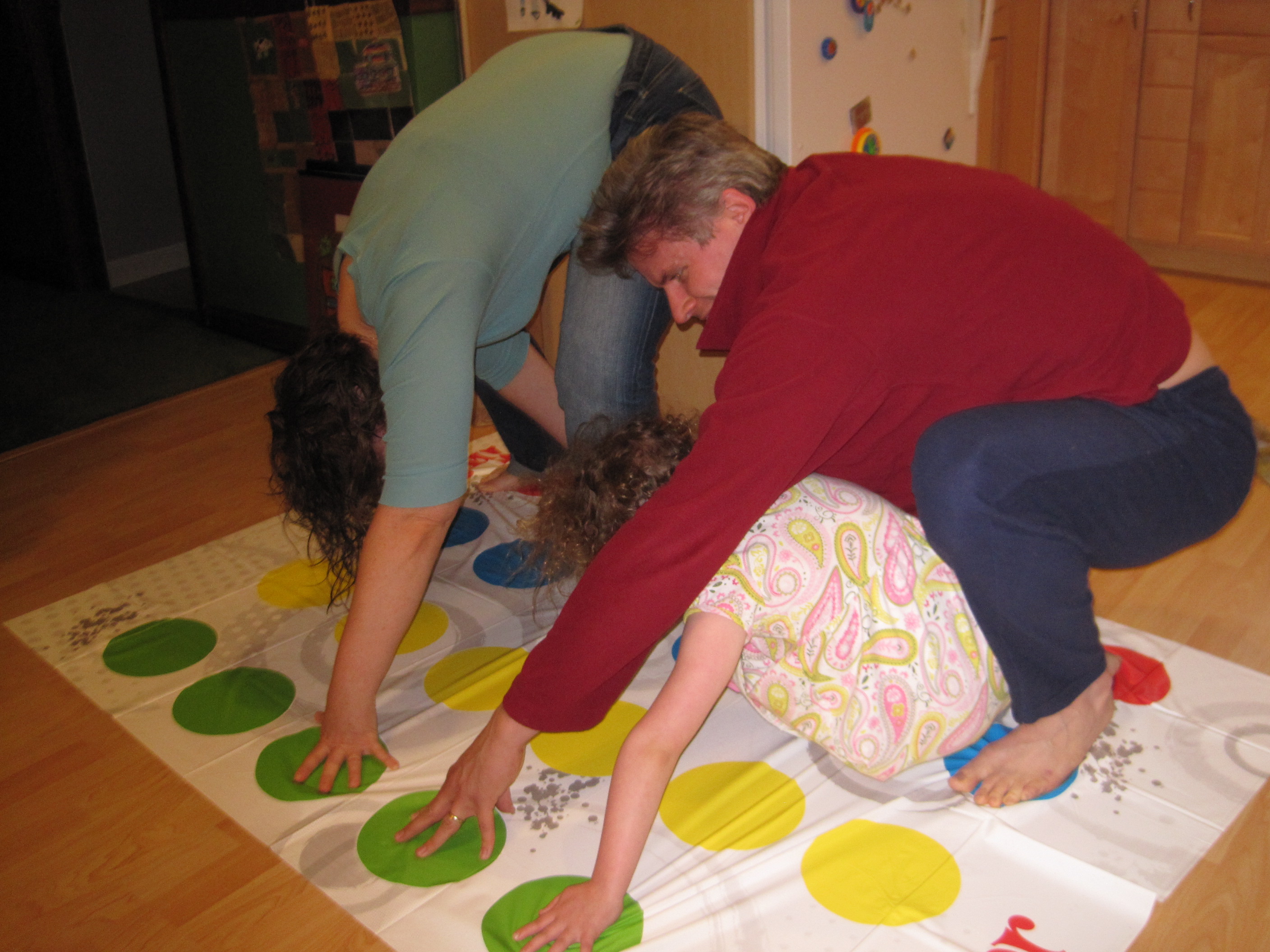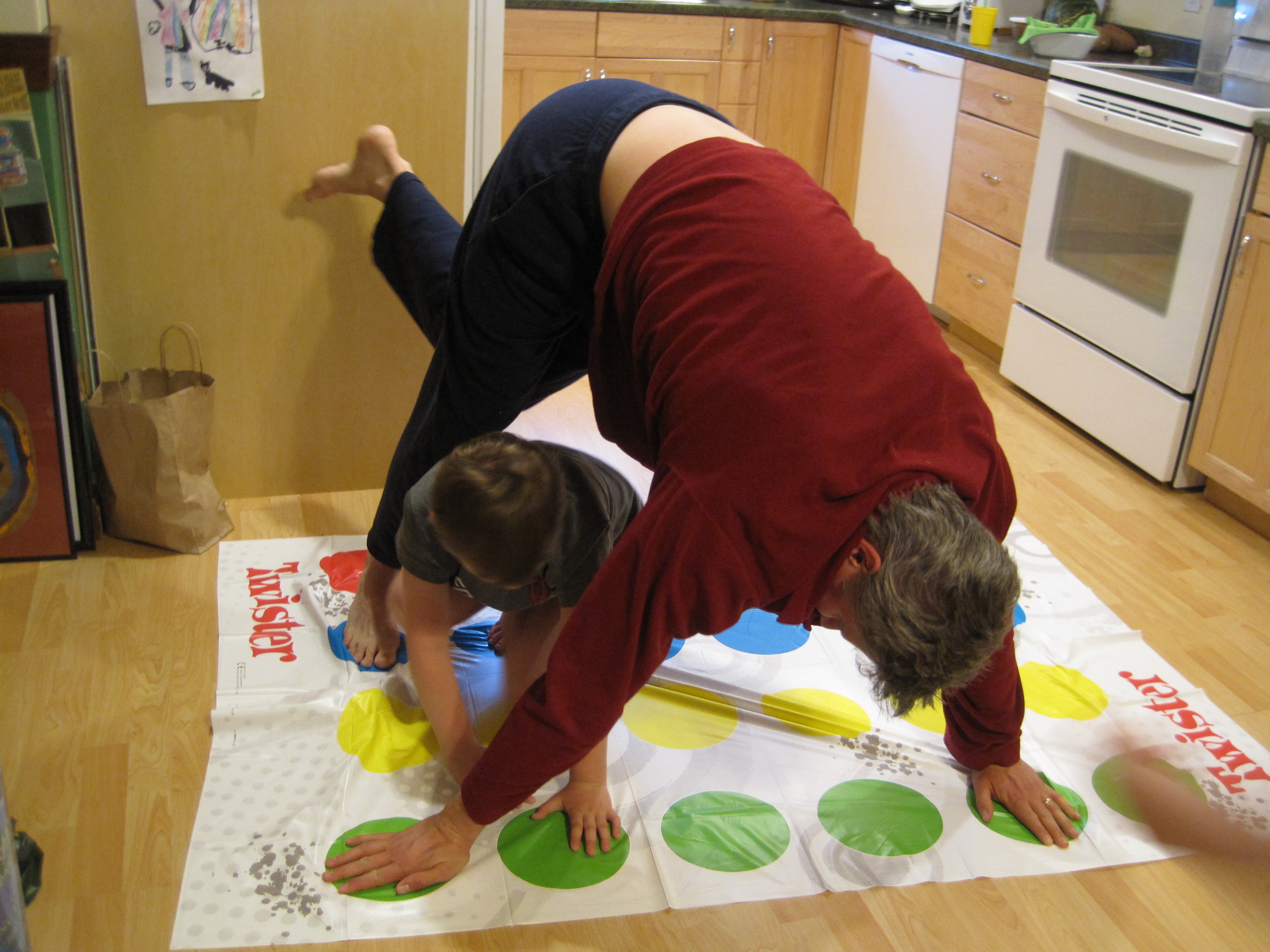 When we were all done and laughing on the floor, Lex suggested a family picture on the Twister mat. What a great idea!!