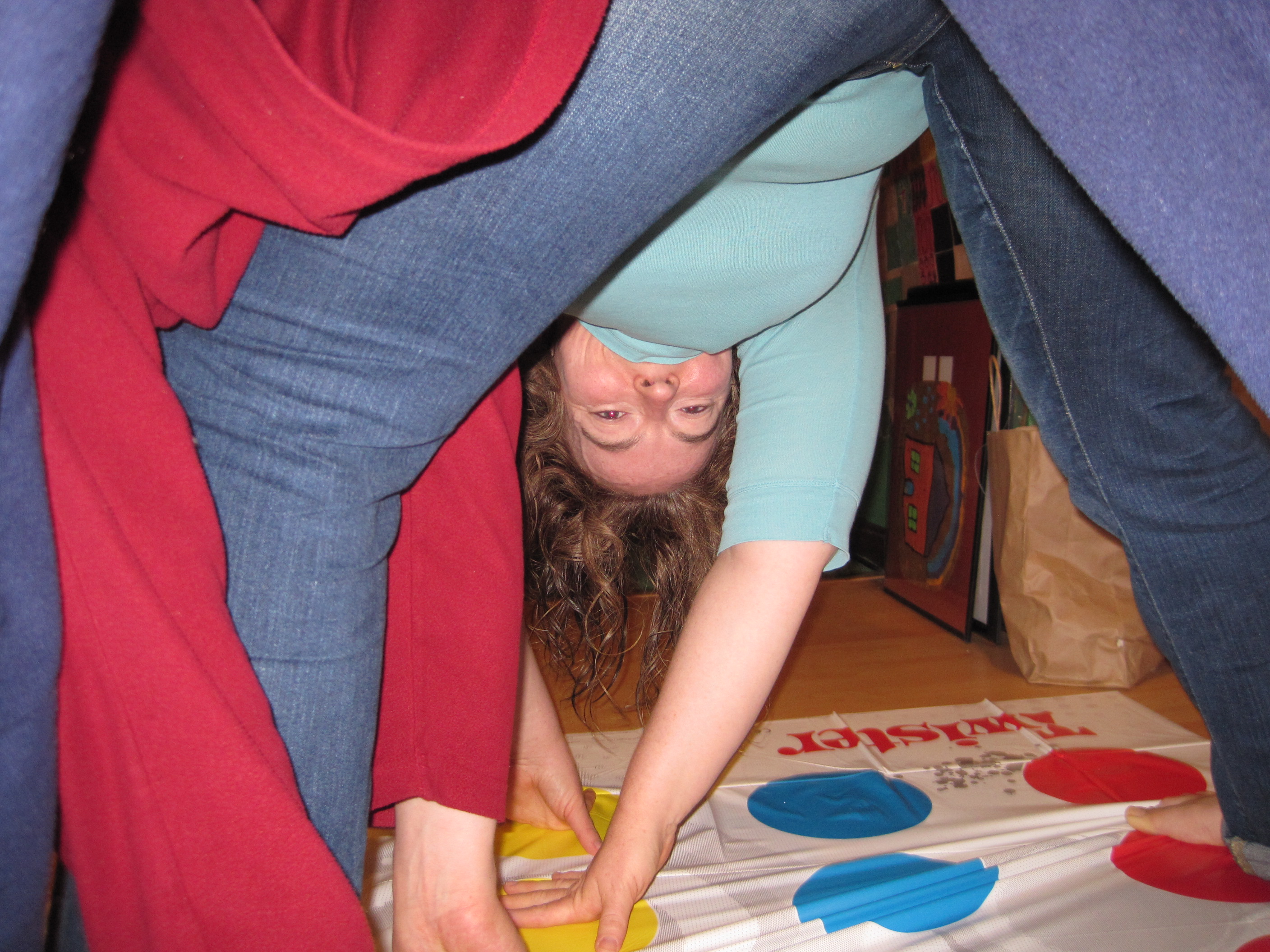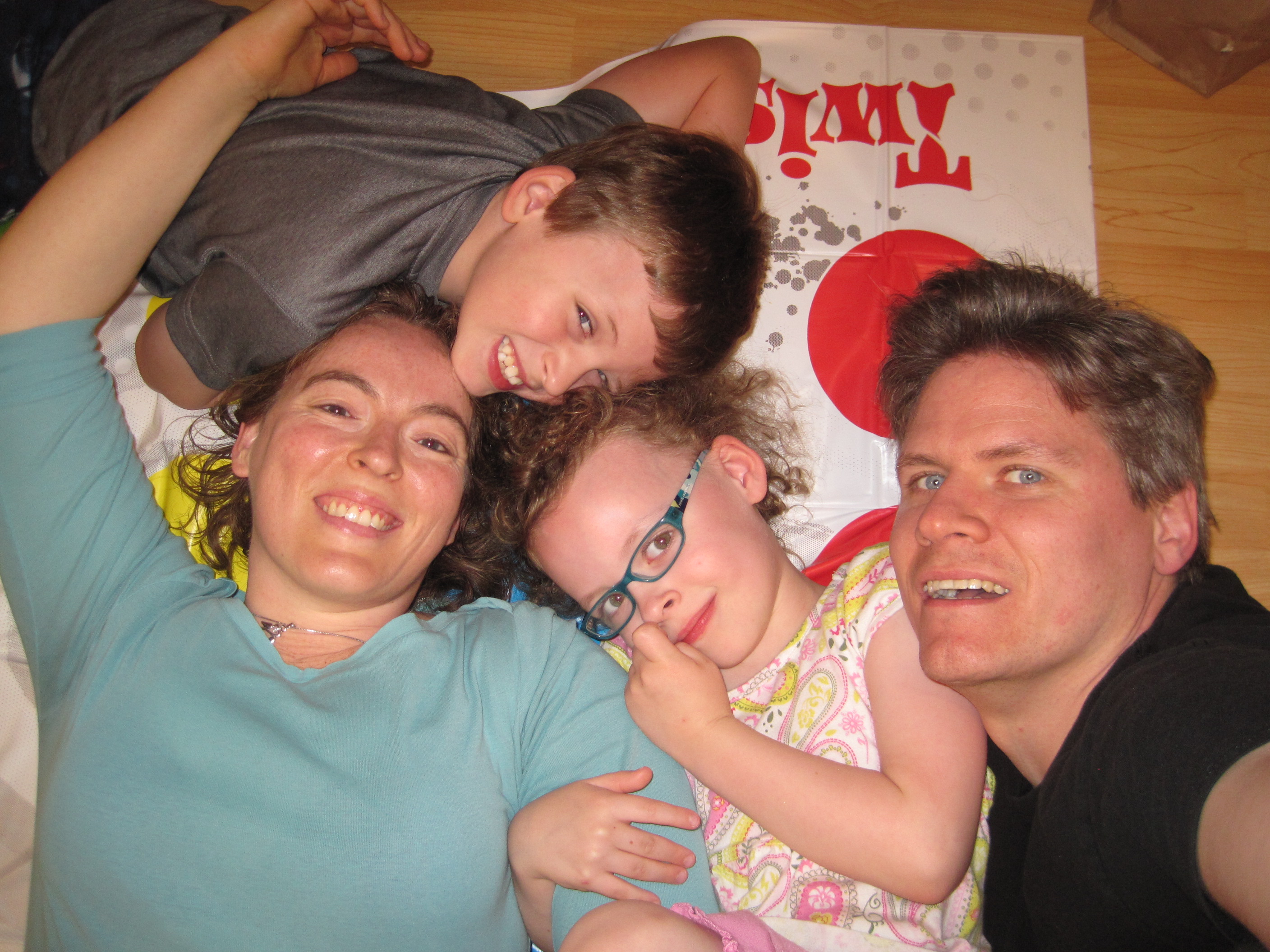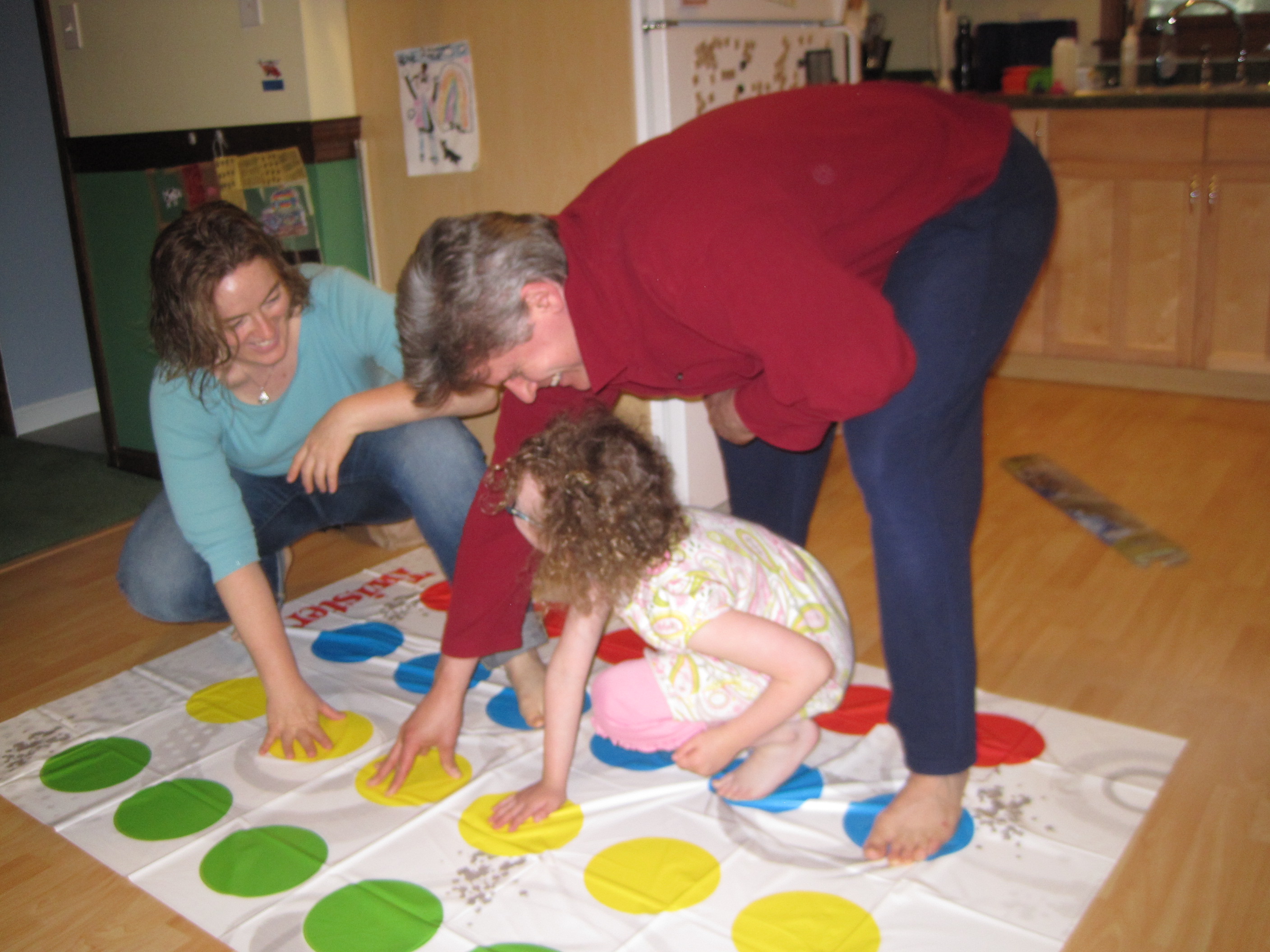 When we were all done and laughing on the floor, Lex suggested a family picture on the Twister mat. What a great idea!!