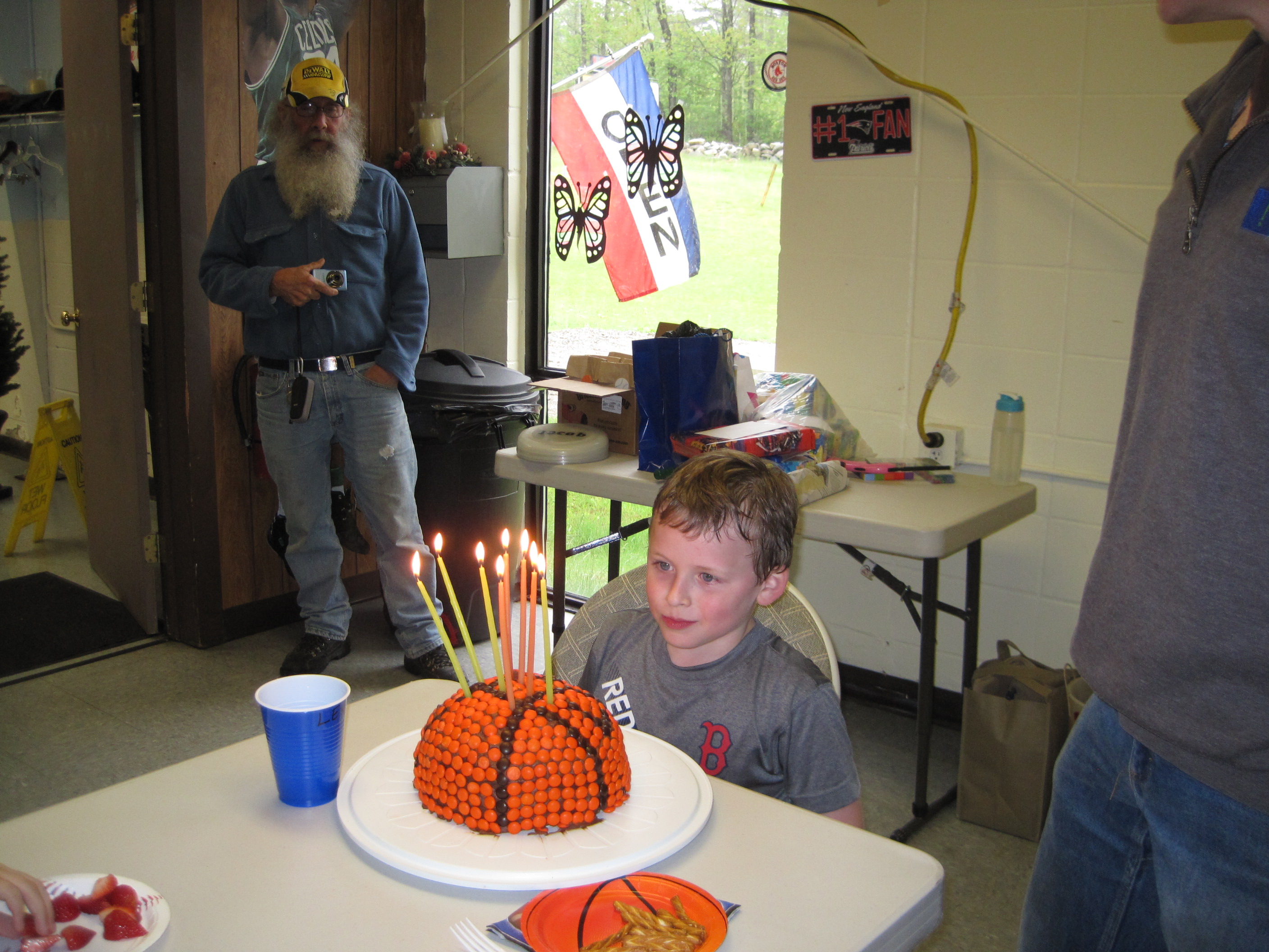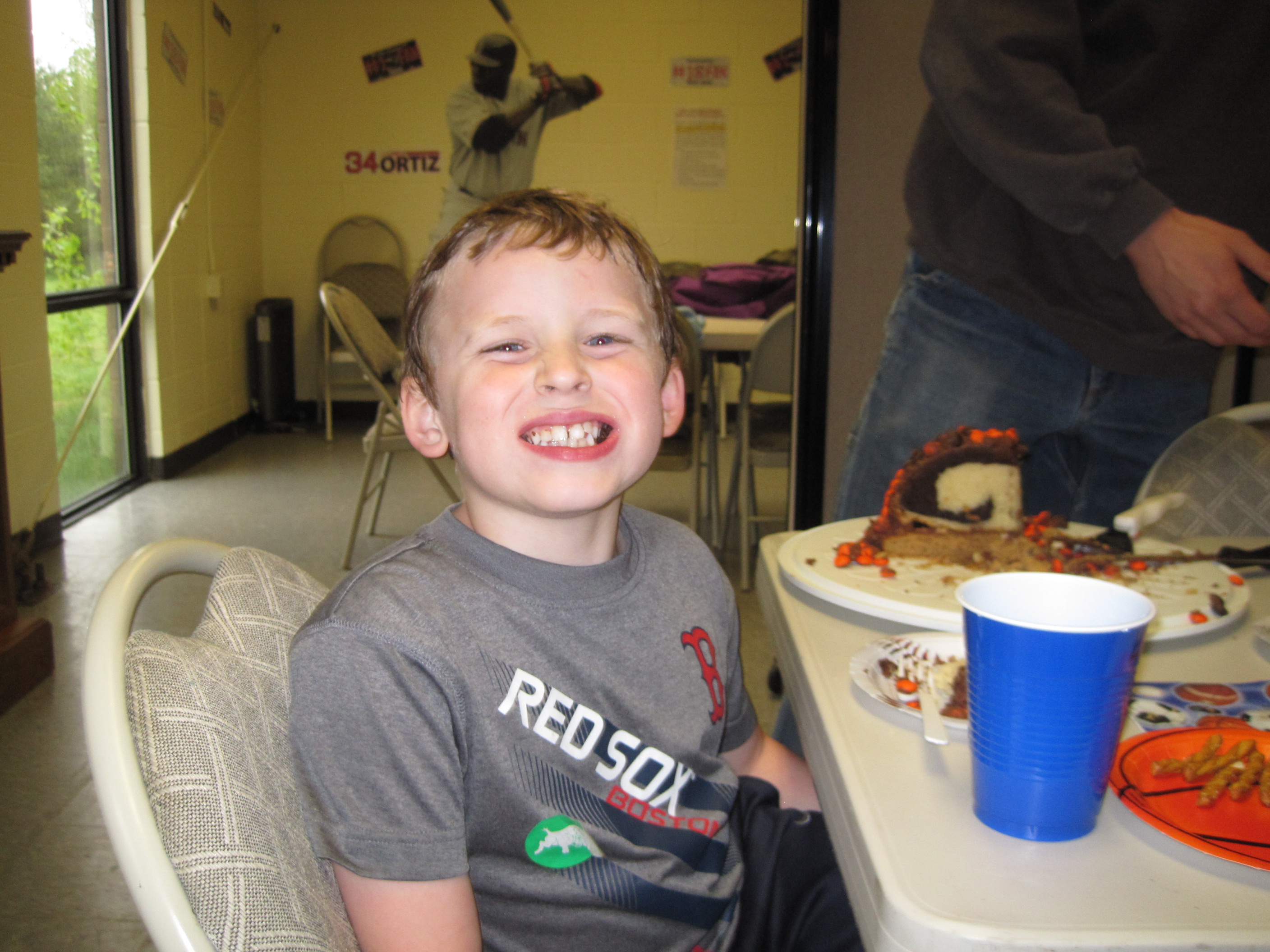 Then, of course, cake!!! This was a chocolate peanut butter cake. Not as fancy as the basketball cake from Saturday, but sooo much tastier!